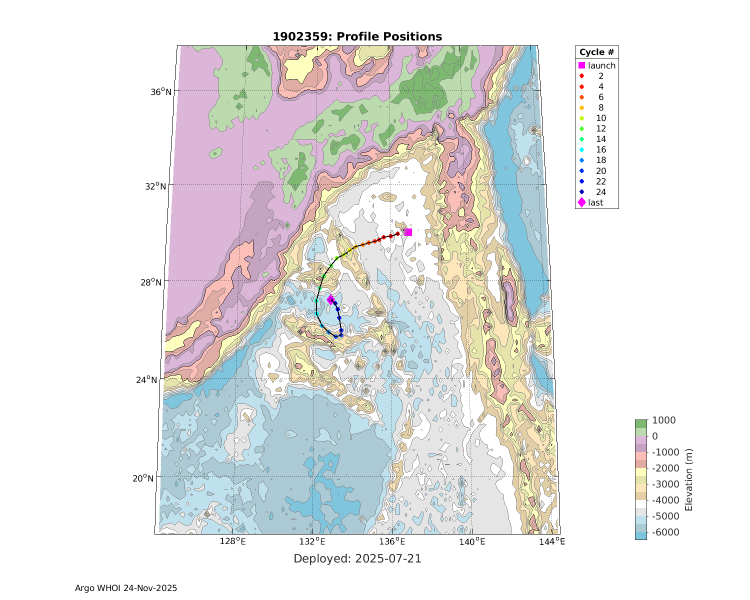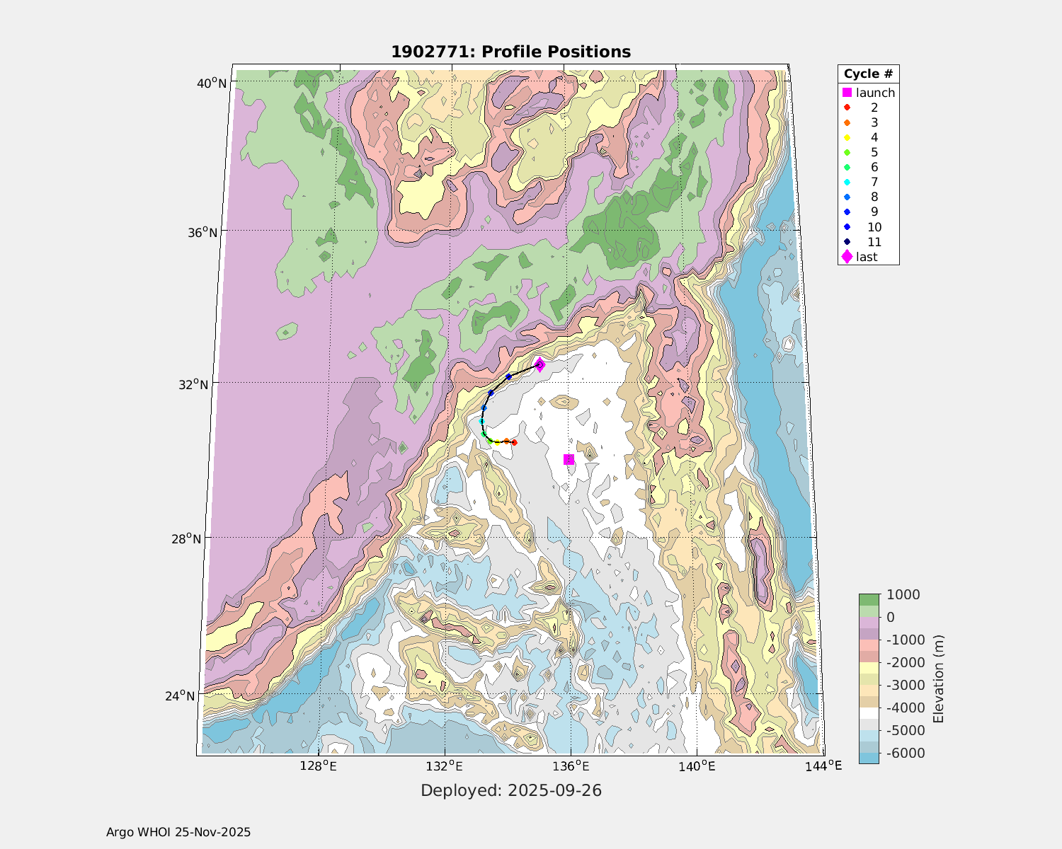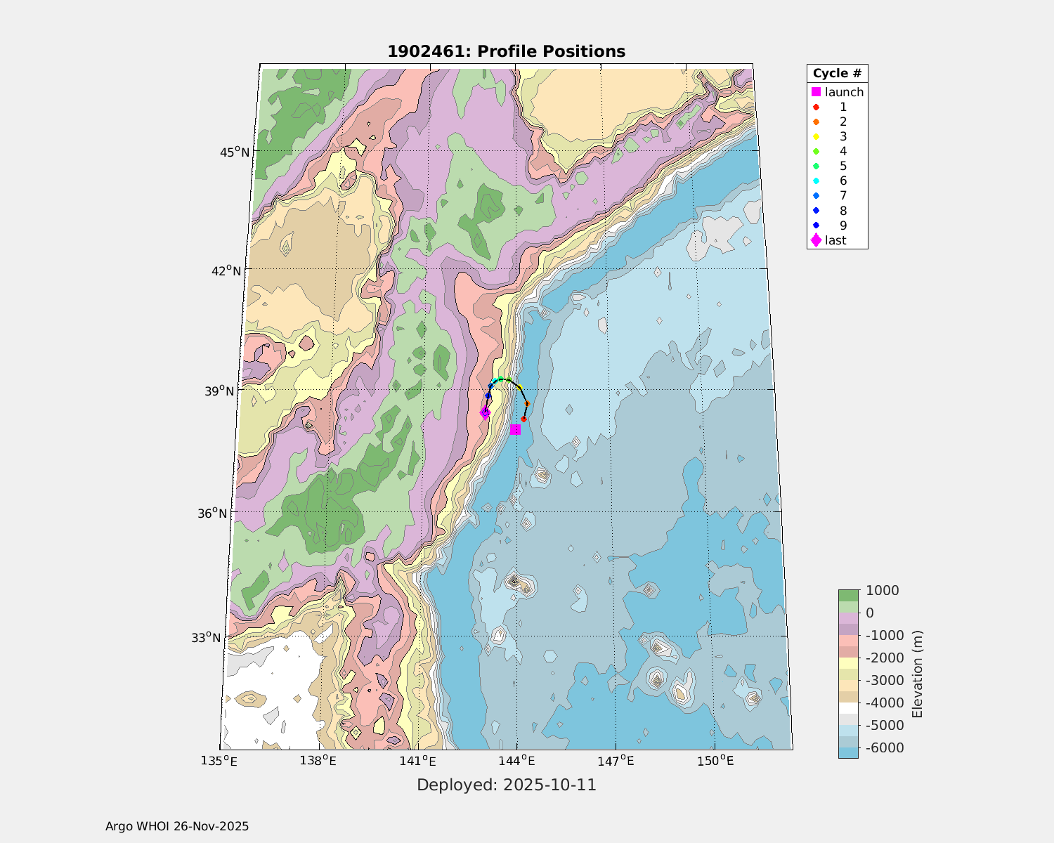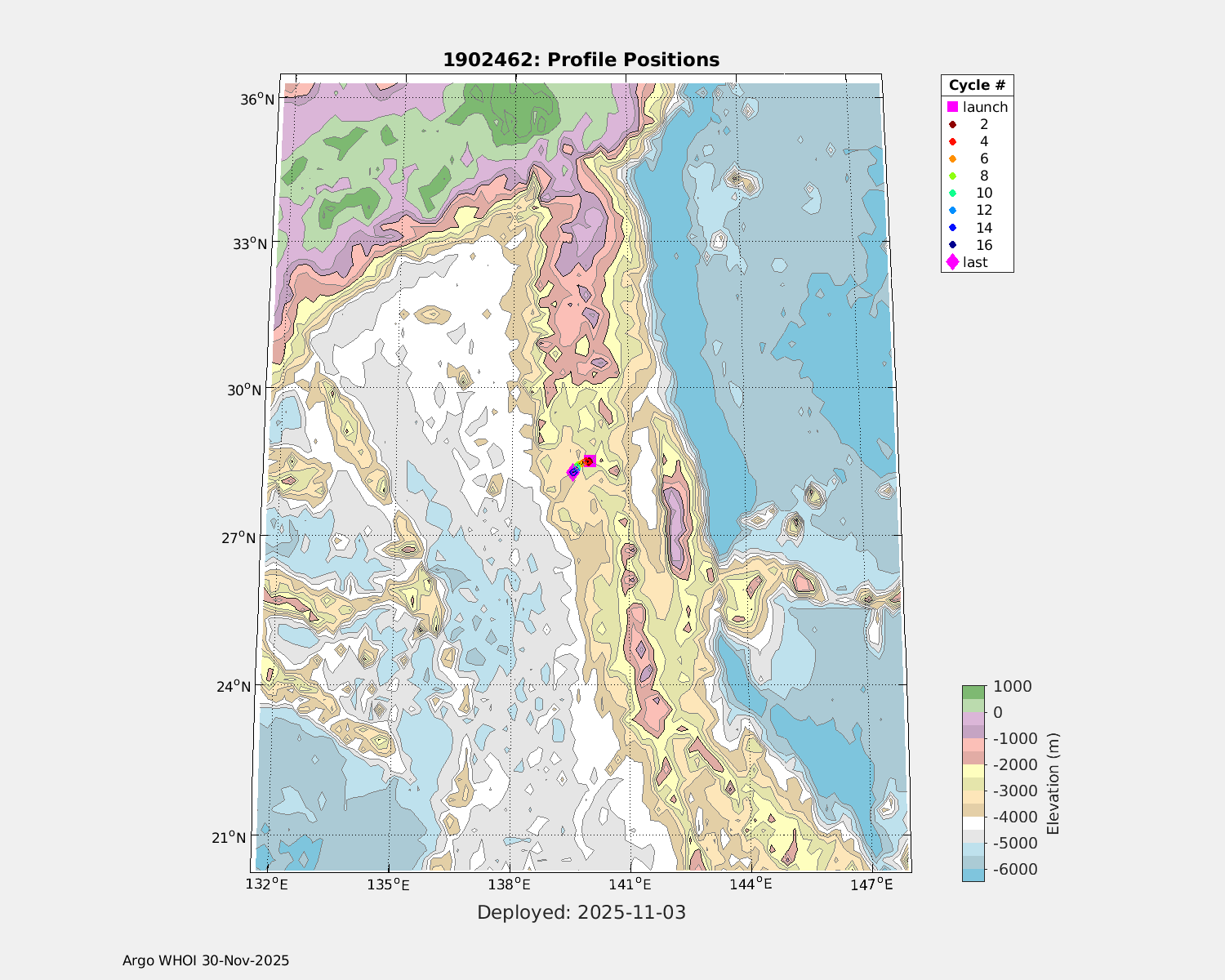 | WMO: #1902463 DAC: jma PI: Shigeki HOSODA APEX: #10804 DRUCK: #12395433 SBE41CP: #19914 Altimeter Comparison (IFREMER) EuroArgo Link | n/a | n/a | ![]() |