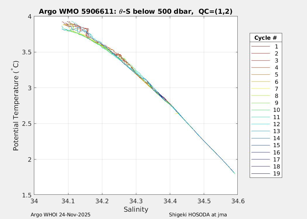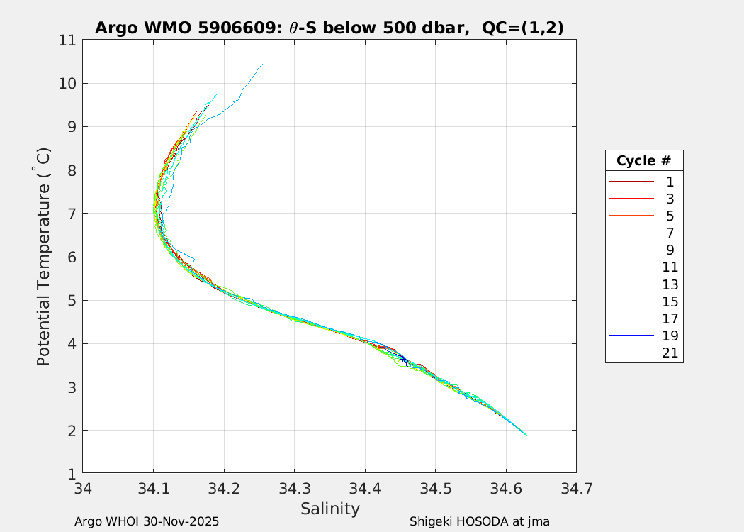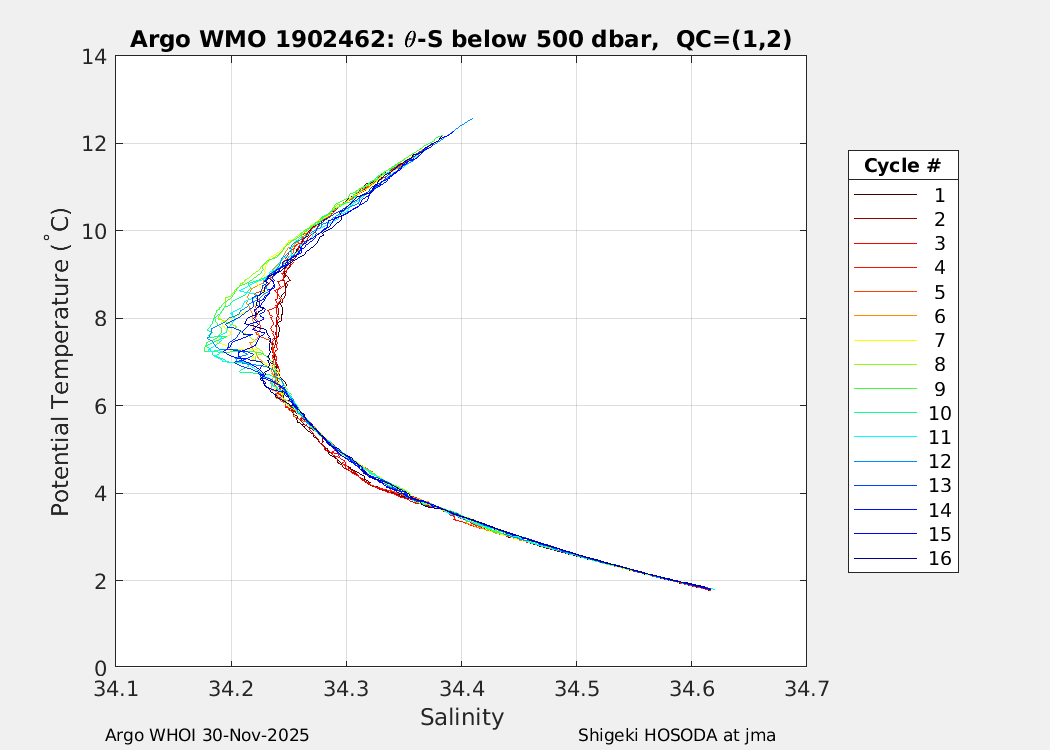 | WMO: #4903616 DAC: jma PI: Shigeki HOSODA APEX: #10798 DRUCK: #12374990 SBE41CP_V7.2.5: #19578 Altimeter Comparison (IFREMER) EuroArgo Link | ![]() |
