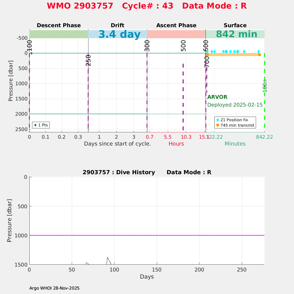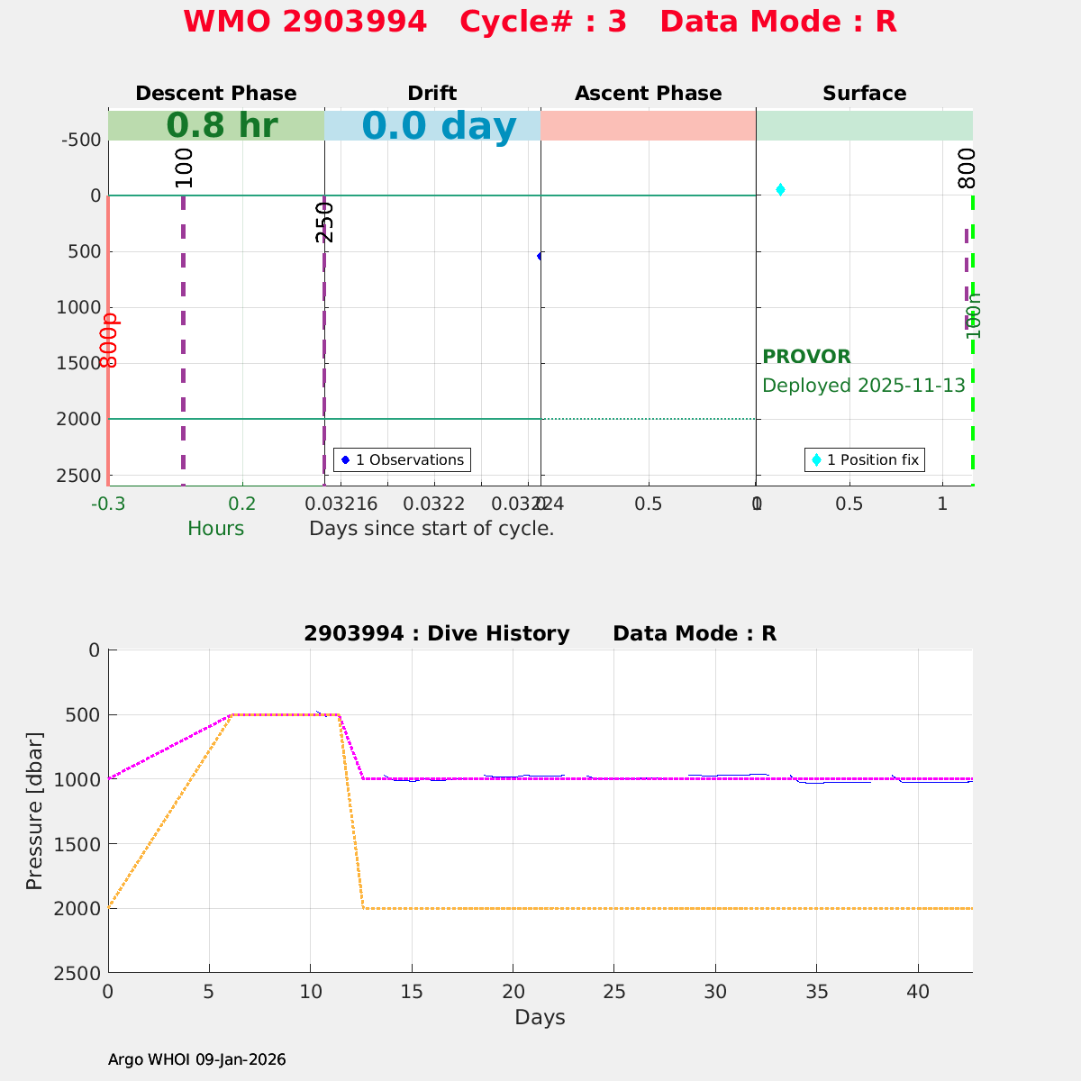 | WMO: #3902452 DAC: jma PI: JAMSTEC APEX: #10776 SBE41CP_V7.2.5: #20608 ARO_FT: #0G3R011 Altimeter Comparison (IFREMER) EuroArgo Link | ![]() |