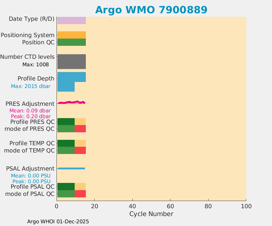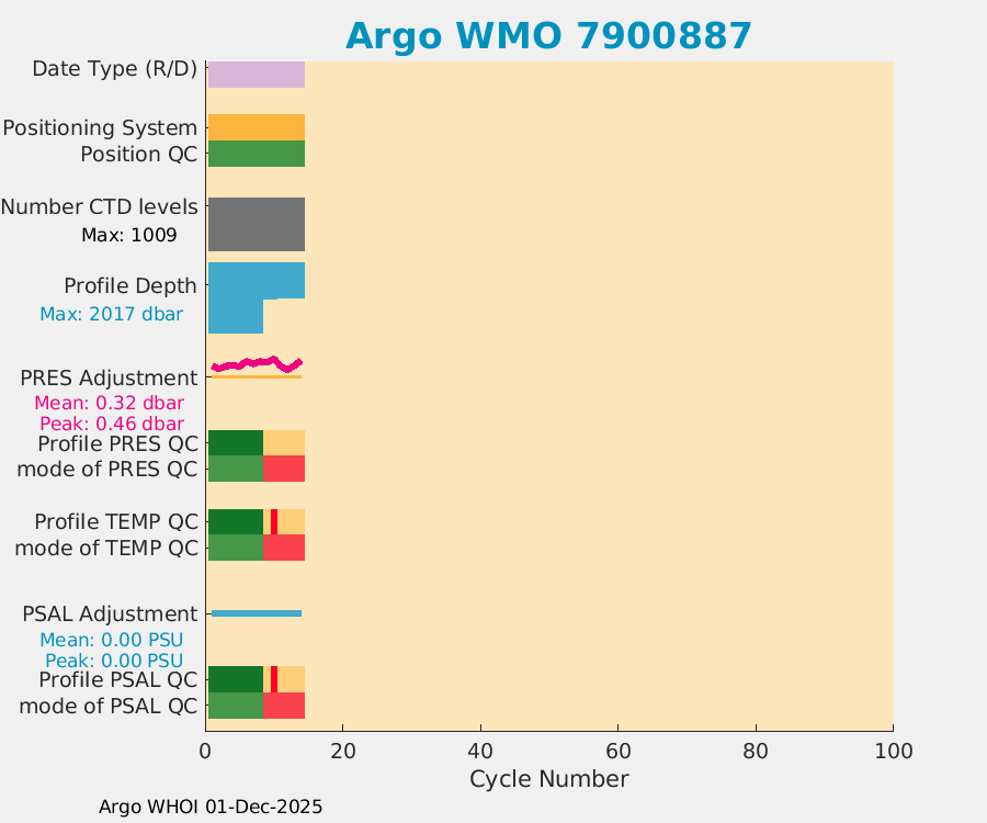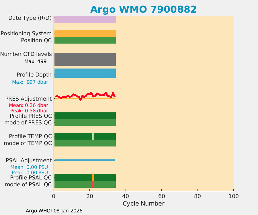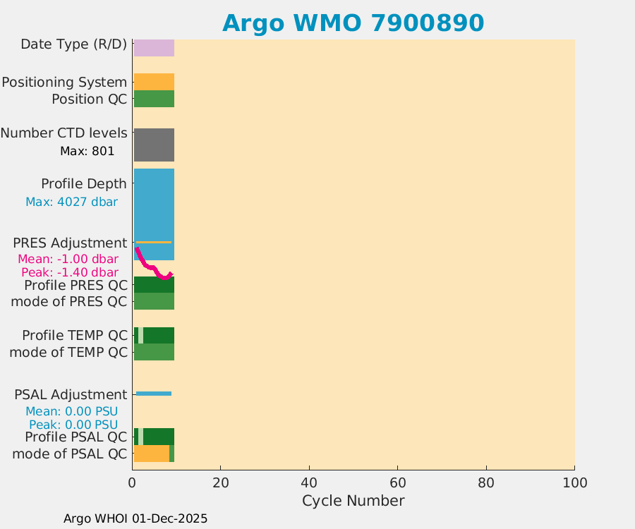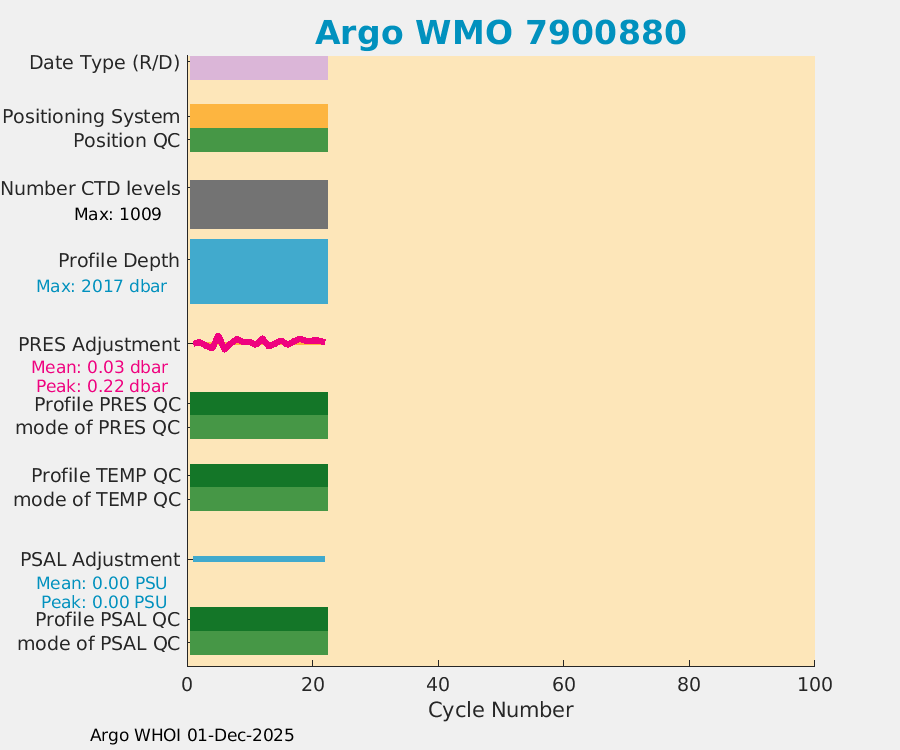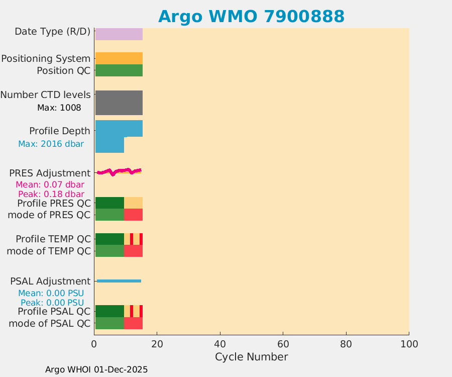 | WMO: #7900880 DAC: jma PI: JAMSTEC APEX: #10799 DRUCK: #12600477 SBE41CP_V7.2.5: #20421 Altimeter Comparison (IFREMER) EuroArgo Link | ![]() |