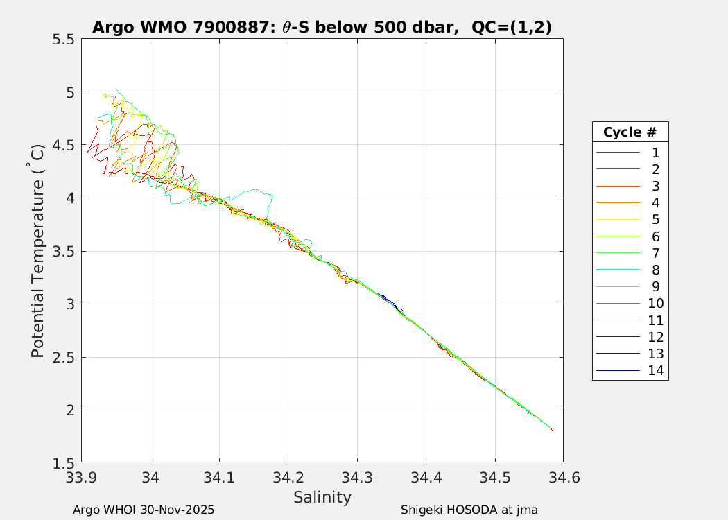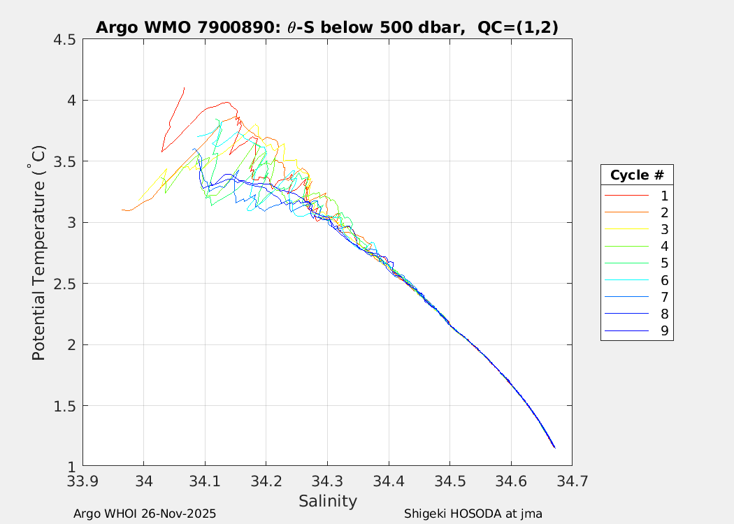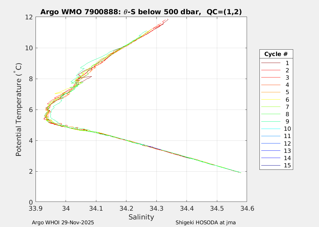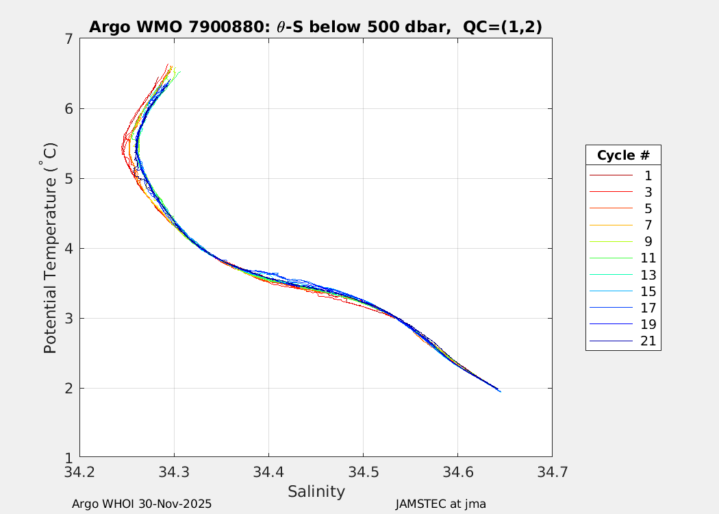 | WMO: #7900889 DAC: jma PI: Shigeki HOSODA APEX: #10787 SBE41CP: #20518 ARO_FT: #0G3R006 Altimeter Comparison (IFREMER) EuroArgo Link | n/a | n/a | ![]() |