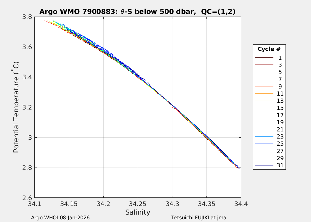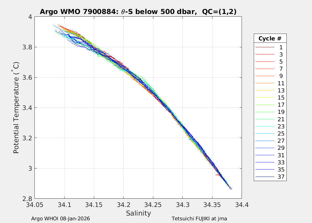 | WMO: #3902448 DAC: jma PI: JAMSTEC APEX: #10796 DRUCK: #12357230 SBE41CP_V7.2.5: #19568 Altimeter Comparison (IFREMER) EuroArgo Link | ![]() |