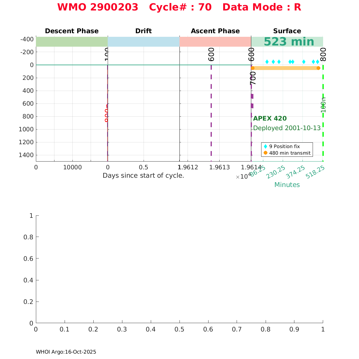 | WMO: #2900203 DAC: kiost PI: Moon-Sik Suk APEX: #420 AMETEK: #2657714249 SBE: #469 Altimeter Comparison (IFREMER) EuroArgo Link | n/a | n/a | ![]() |