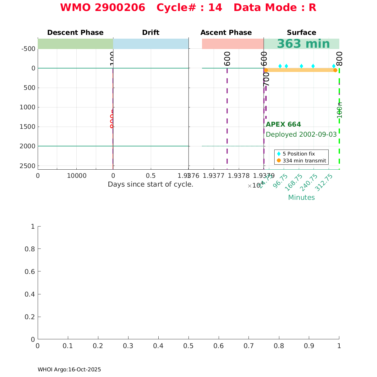 | WMO: #2900205 DAC: kiost PI: Moon-Sik Suk APEX: #663 AMETEK: #2657718159 SBE: #688 Altimeter Comparison (IFREMER) EuroArgo Link | n/a | n/a | ![]() |