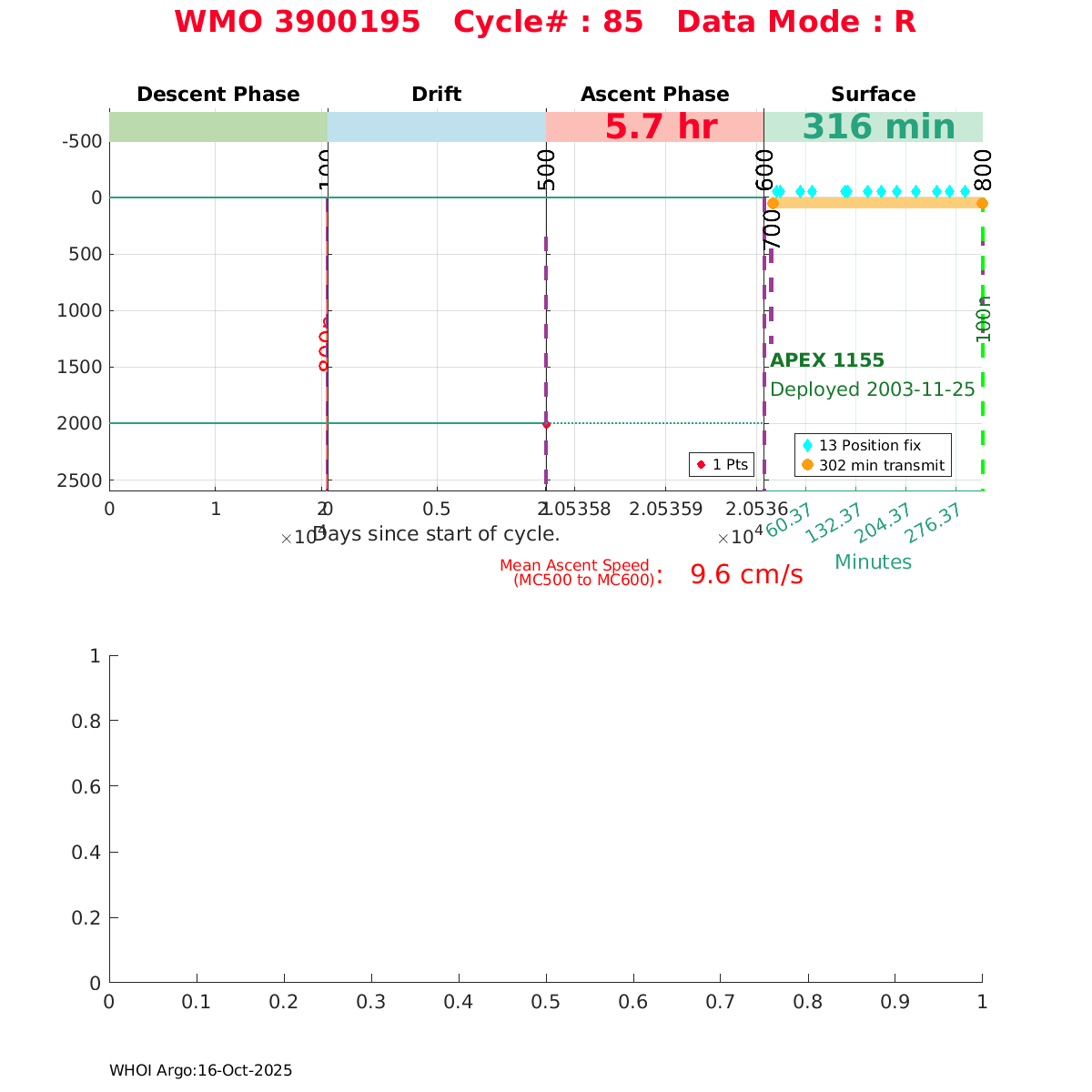 | WMO: #3900195 DAC: kiost PI: Moon-Sik Suk APEX: #1155 DRUCK: #4437 SBE41: #1201 Altimeter Comparison (IFREMER) EuroArgo Link | n/a | n/a | ![]() |