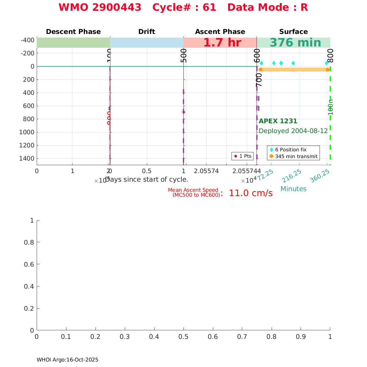| WMO: #2900443 DAC: kiost PI: Moon-Sik Suk APEX: #1231 DRUCK: #4893 SBE41: #1256 Altimeter Comparison (IFREMER) EuroArgo Link | n/a | n/a | ![]() |