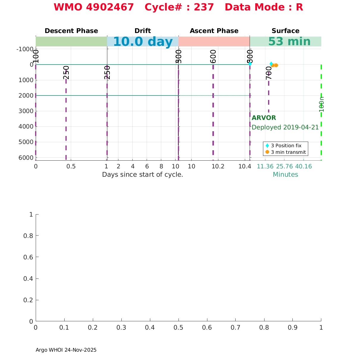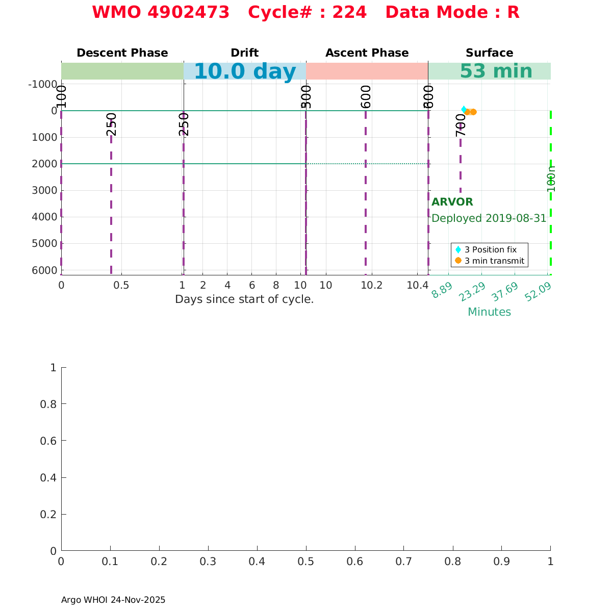 | WMO: #4902473 DAC: meds PI: Blair Greenan ARVOR: # SBE41CP: #41CP-11407 Altimeter Comparison (IFREMER) EuroArgo Link | ![]() |