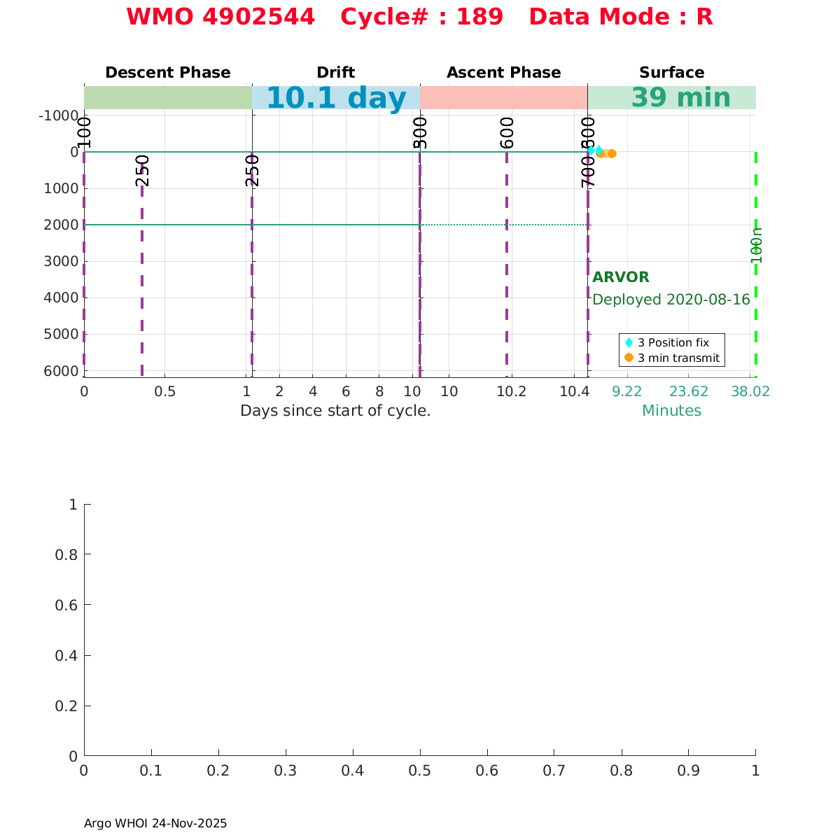 | WMO: #4902549 DAC: meds PI: Blair Greenan ARVOR: # SBE41CP: #12466 AANDERAA_OPTODE_4330: #3257 Altimeter Comparison (IFREMER) EuroArgo Link | ![]() |