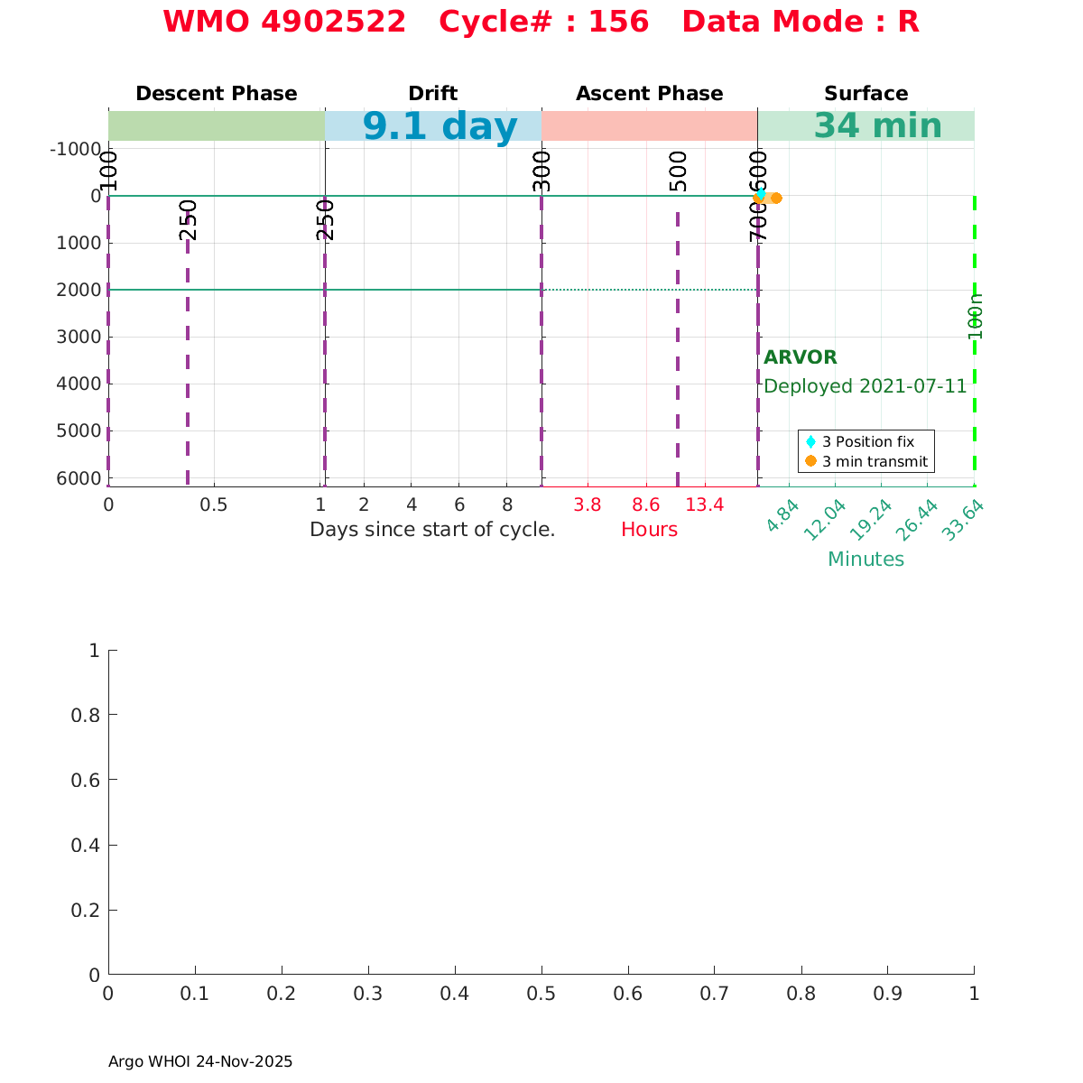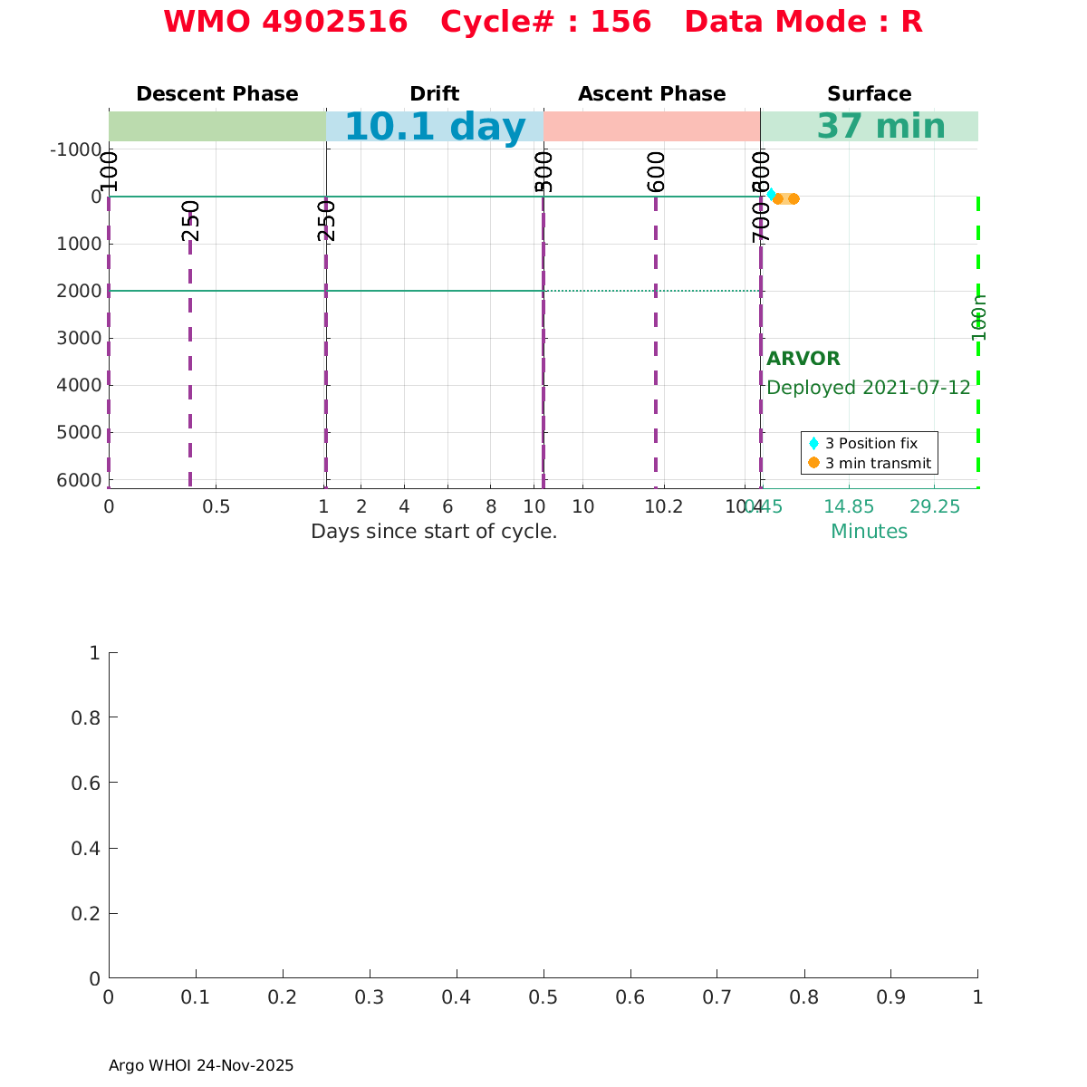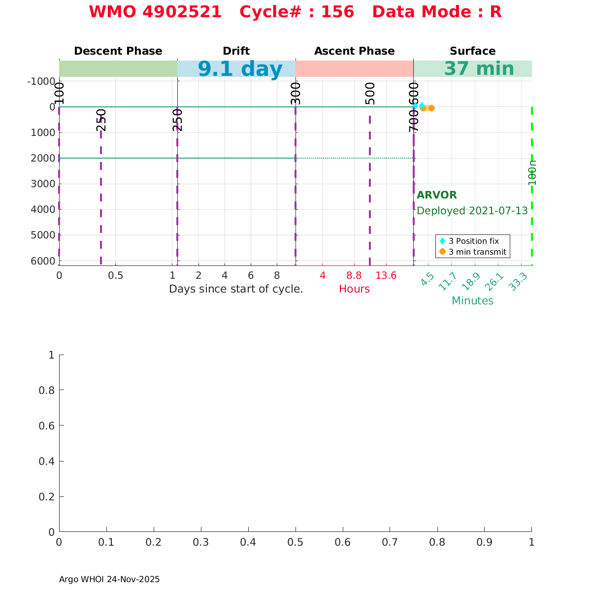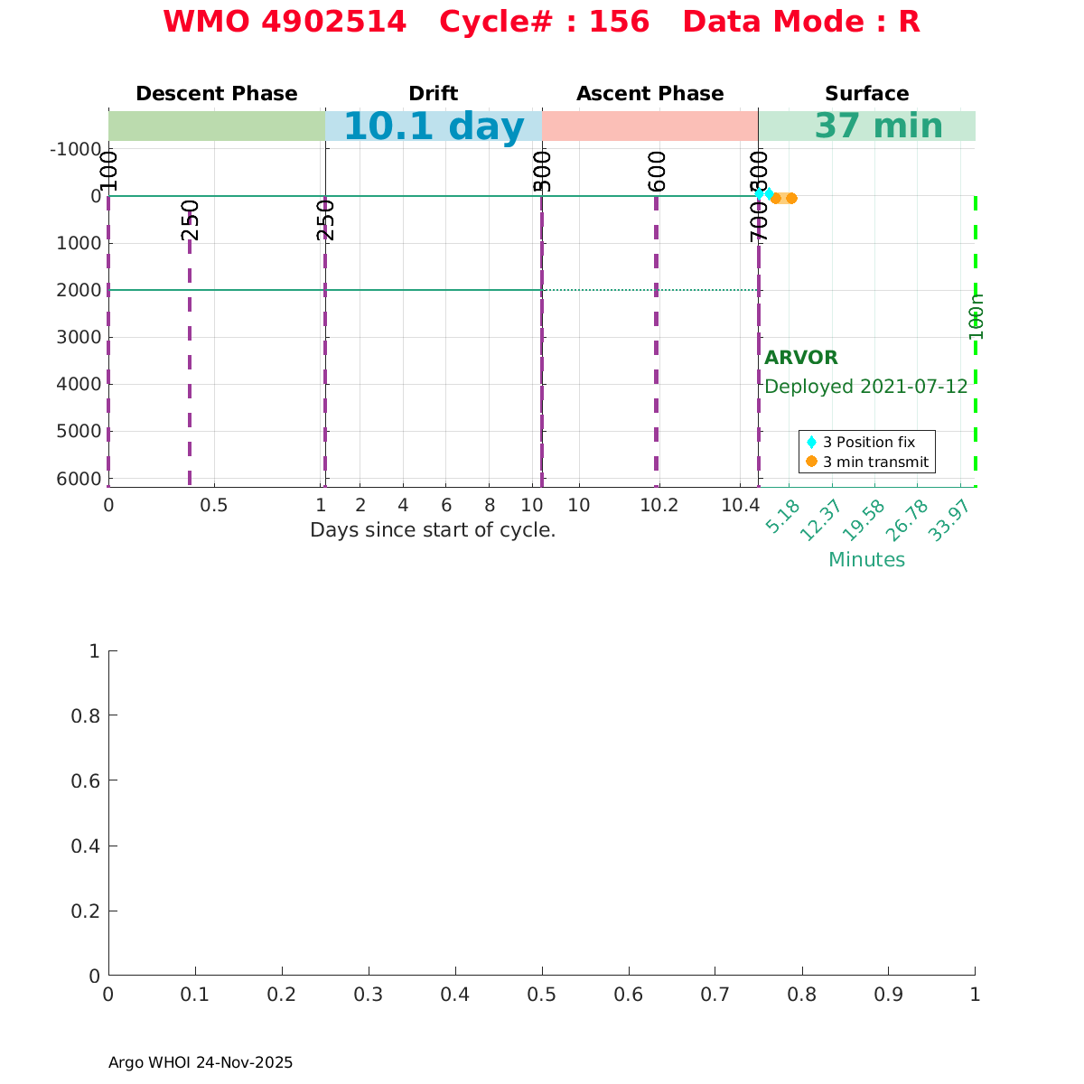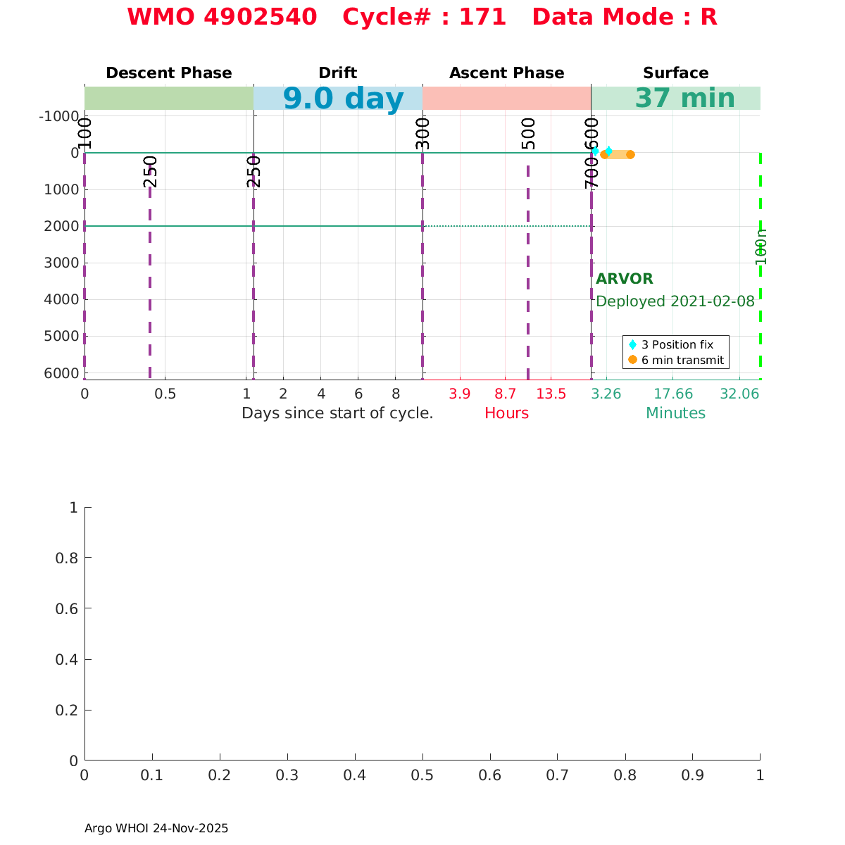| WMO: #4902554 DAC: meds PI: Blair Greenan ARVOR: # SBE41CP: #12471 AANDERAA_OPTODE_4330: #3348 Altimeter Comparison (IFREMER) EuroArgo Link | ![]() |