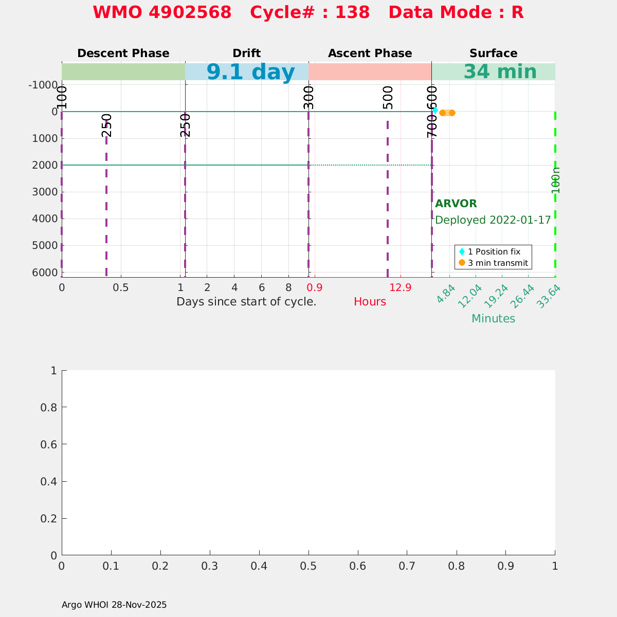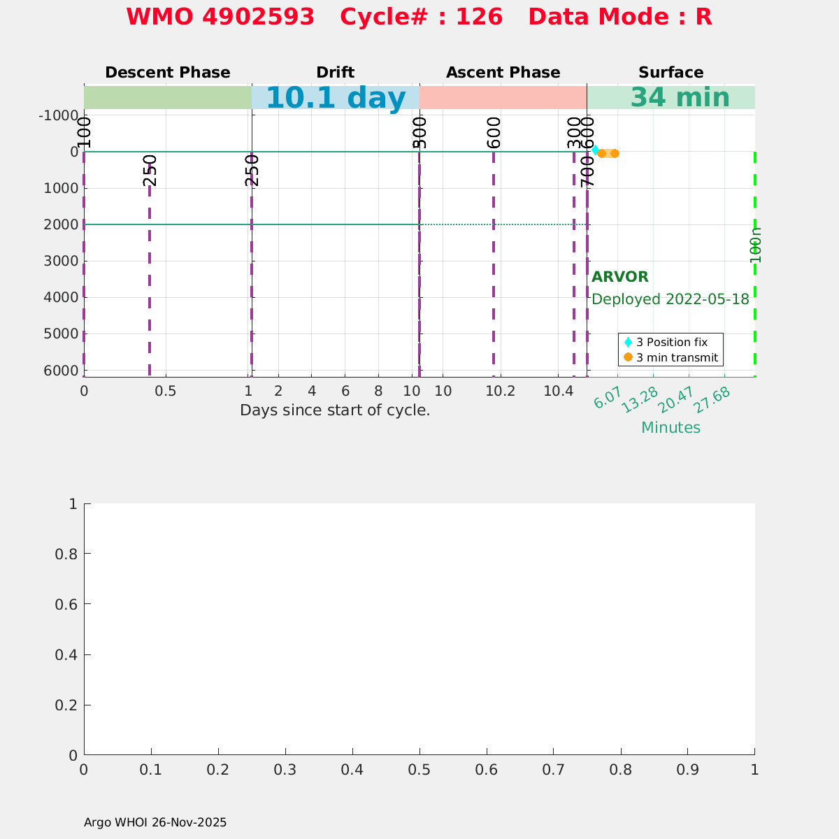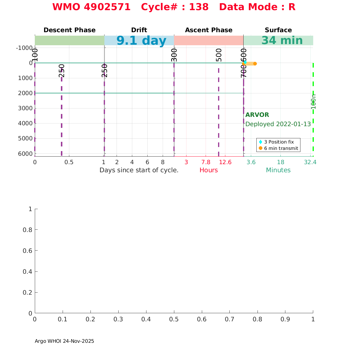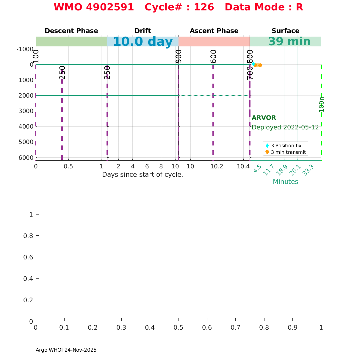 | WMO: #4902591 DAC: meds PI: Marc Ringuette ARVOR: # SBE41CP: #n/a SBE41CP: #41CP-13215 FLOATCLOCK: # Altimeter Comparison (IFREMER) EuroArgo Link | ![]() |