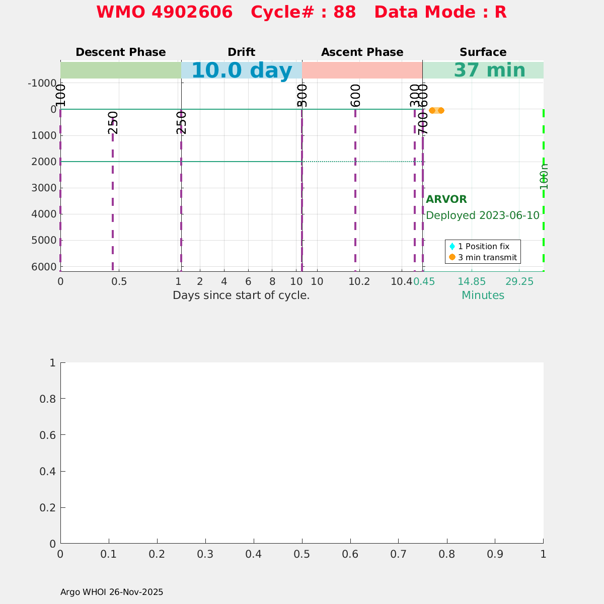 | WMO: #4902619 DAC: meds PI: Blair Greenan ARVOR RBR: # RBR_ARGO3: #208621 FLOATCLOCK: # RBR_ARGO3: #208621 Altimeter Comparison (IFREMER) EuroArgo Link | ![]() |