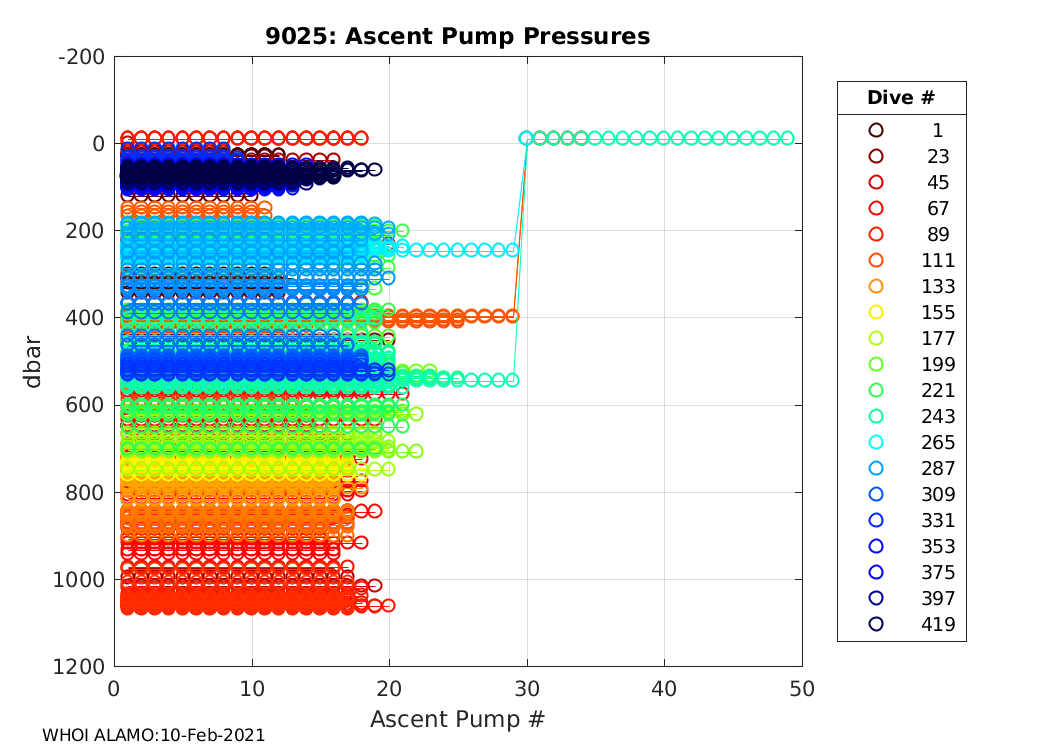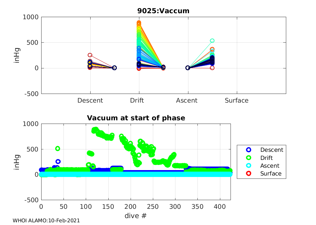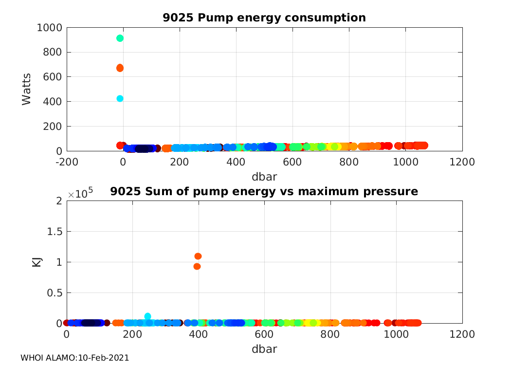 ALAMO Float S/N: 9025 -- plots of RAW telemetry data