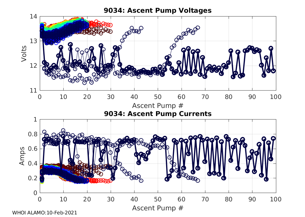 ALAMO Float S/N: 9034 -- plots of RAW telemetry data