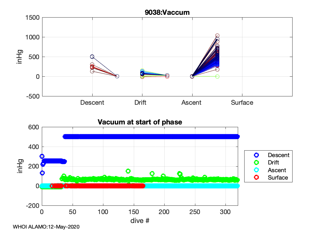 ALAMO Float S/N: 9038 -- plots of RAW telemetry data