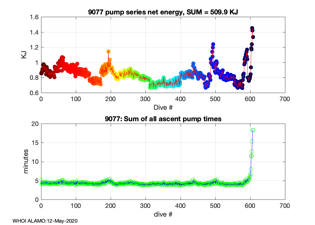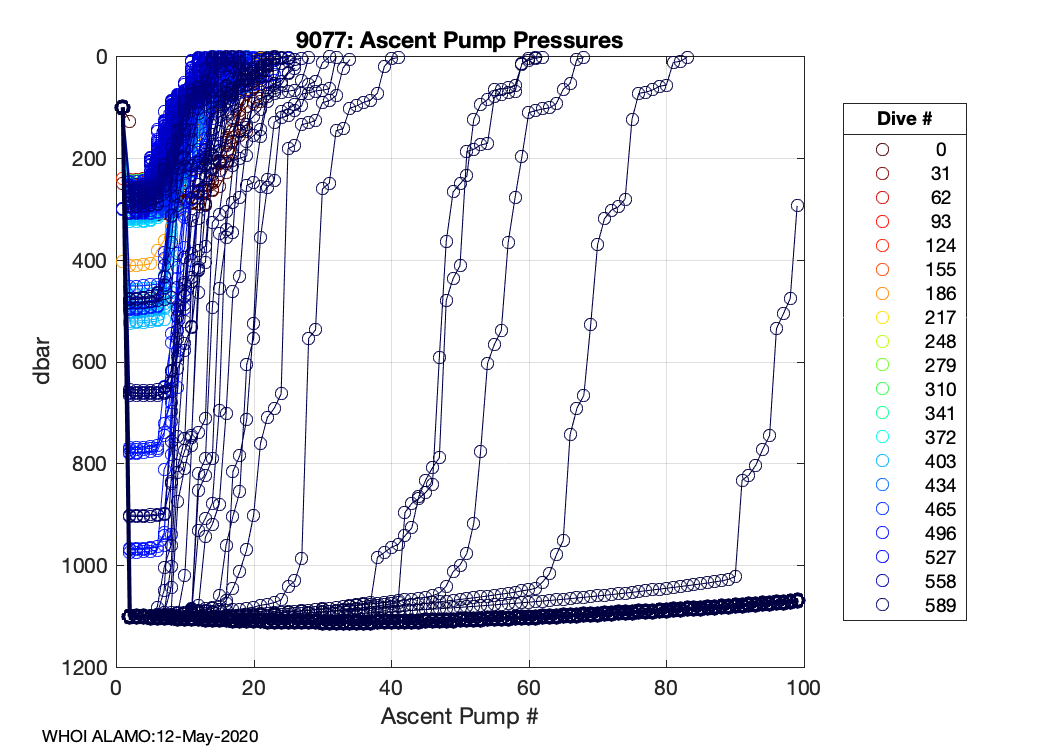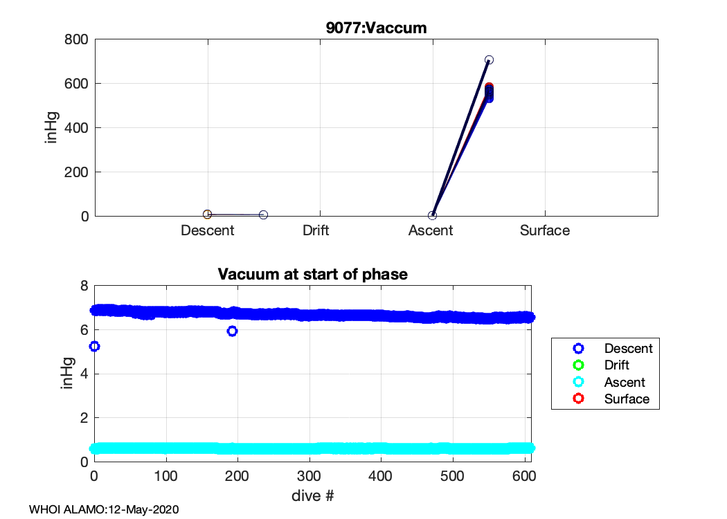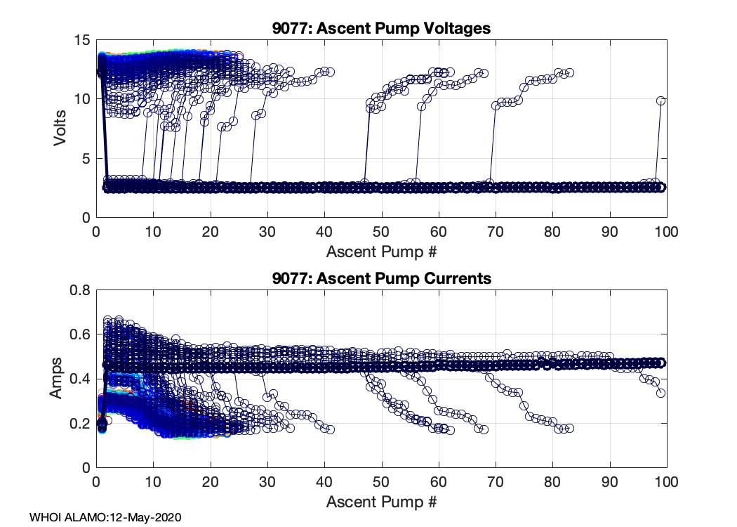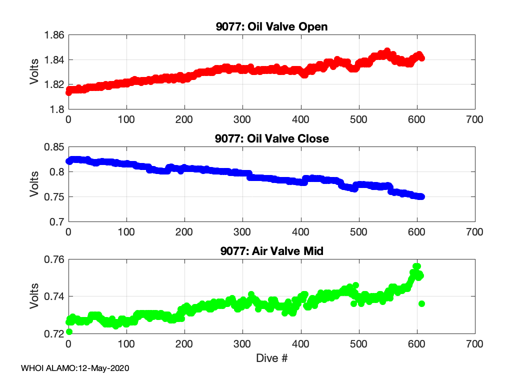 ALAMO Float S/N: 9077 -- plots of RAW telemetry data