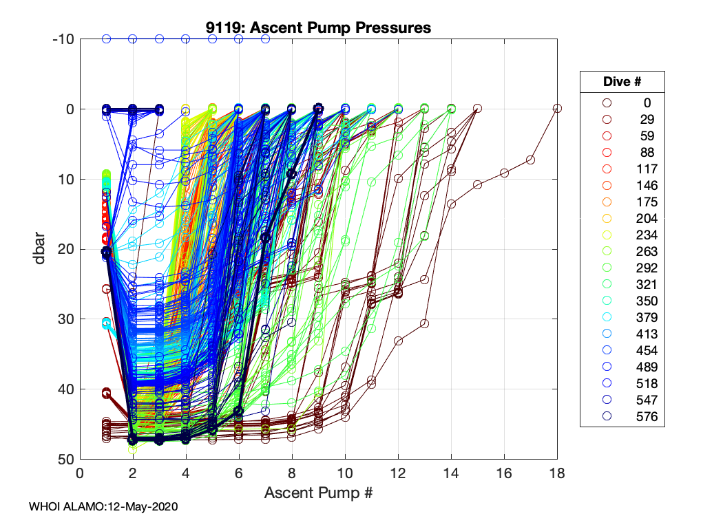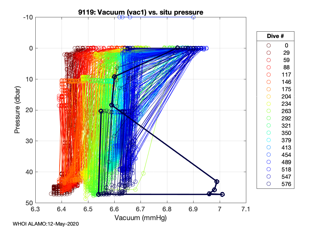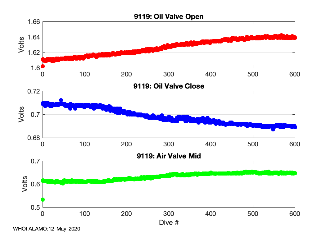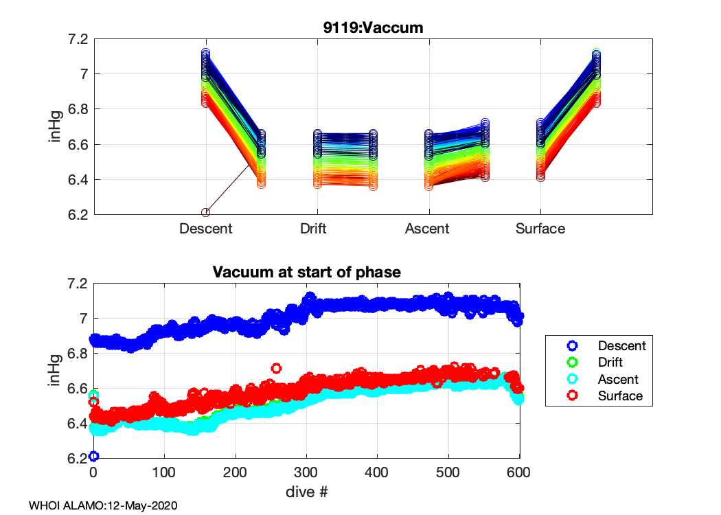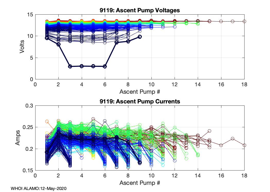 ALAMO Float S/N: 9119 -- plots of RAW telemetry data