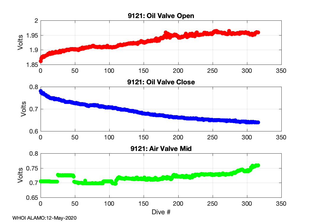ALAMO Float S/N: 9121 -- plots of RAW telemetry data