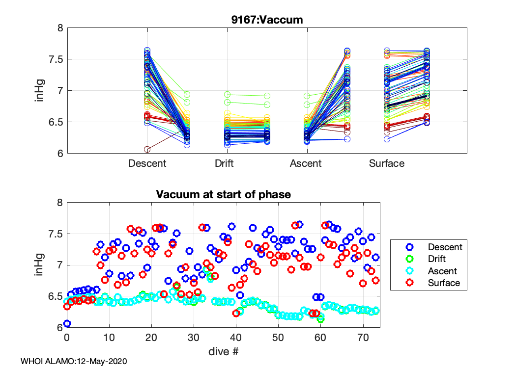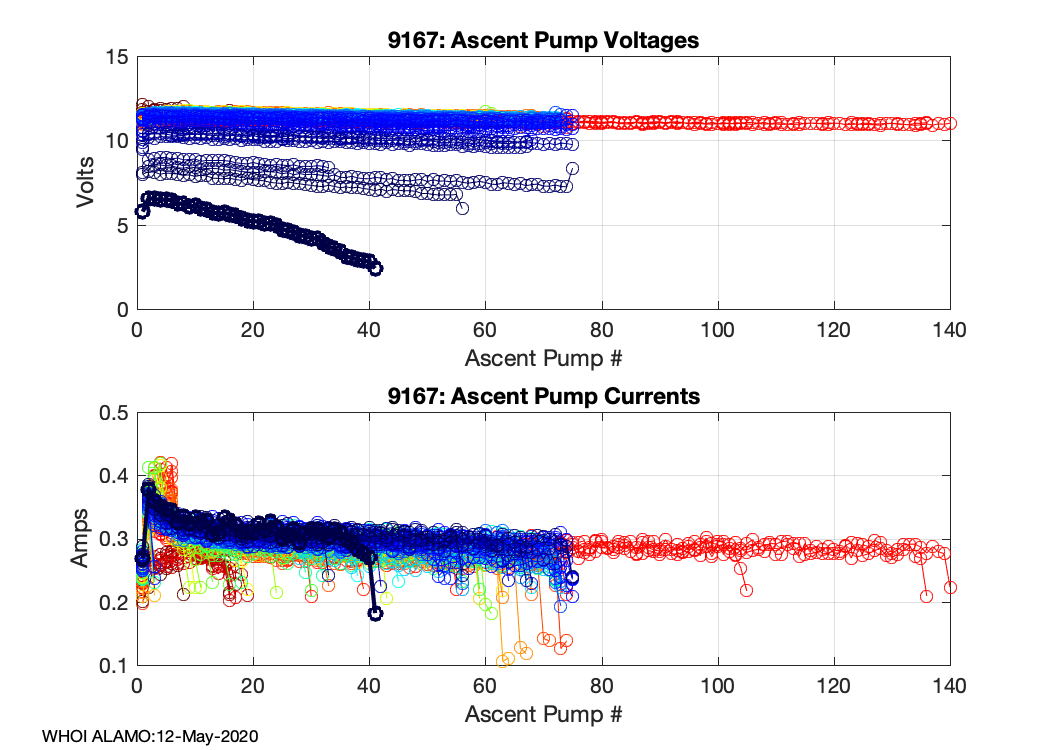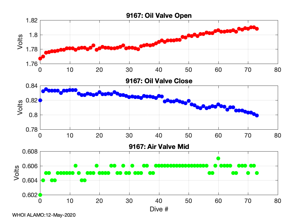 ALAMO Float S/N: 9167 -- plots of RAW telemetry data