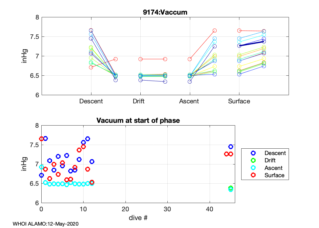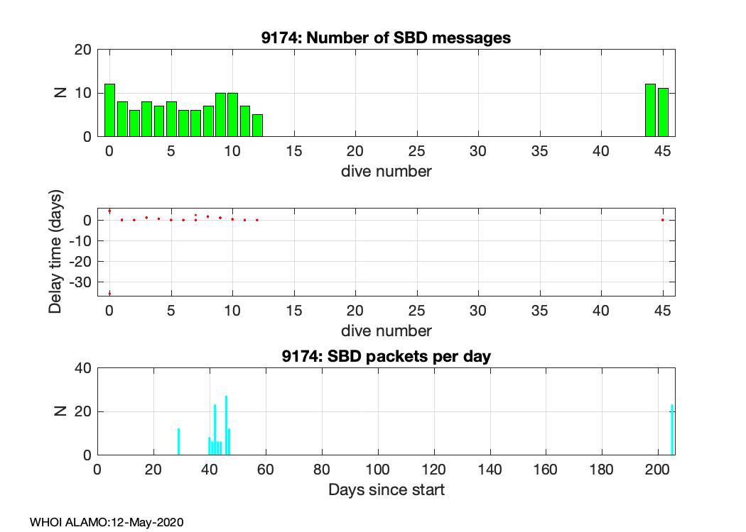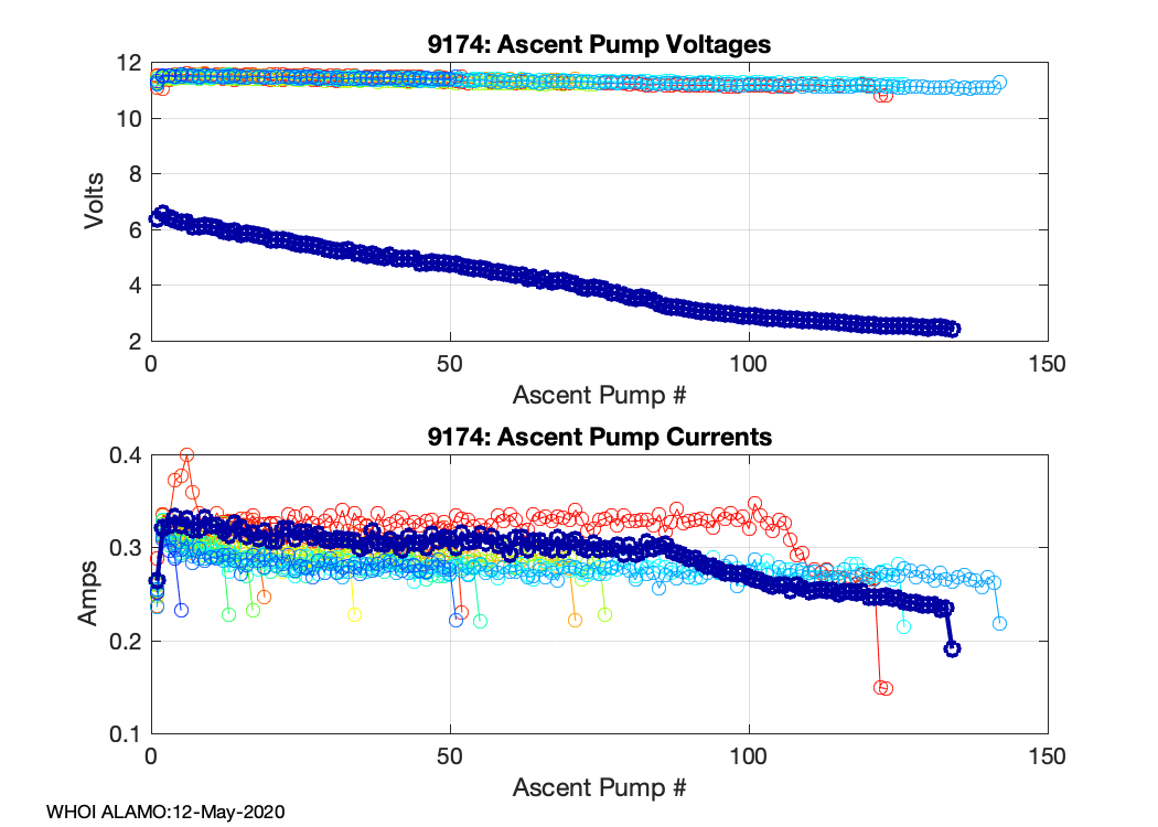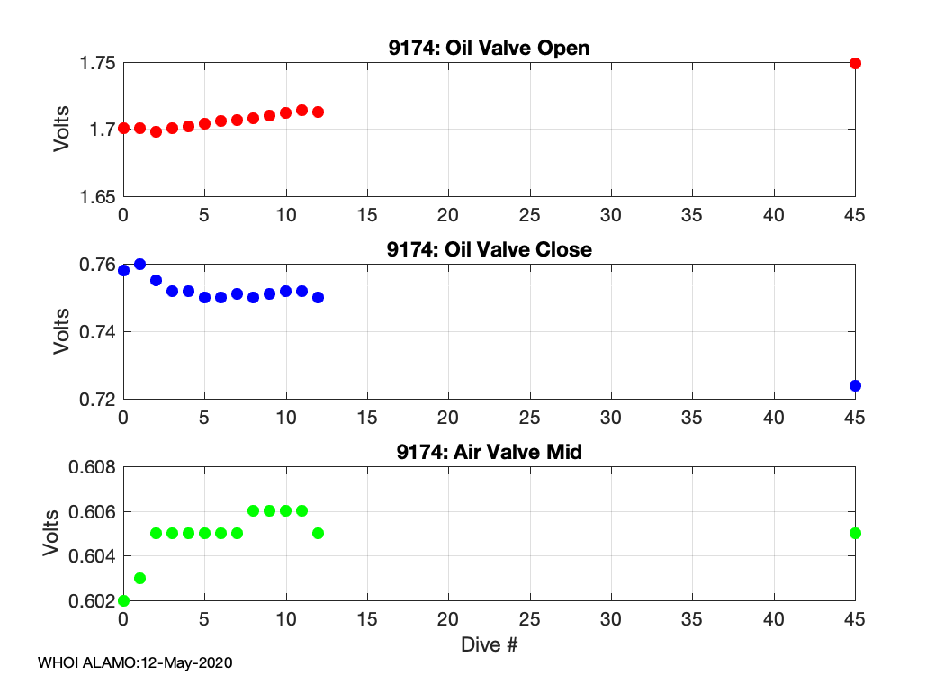 ALAMO Float S/N: 9174 -- plots of RAW telemetry data