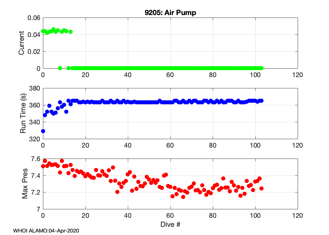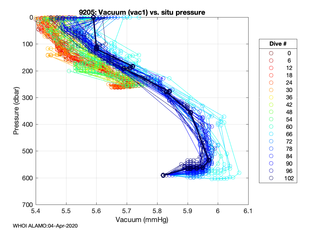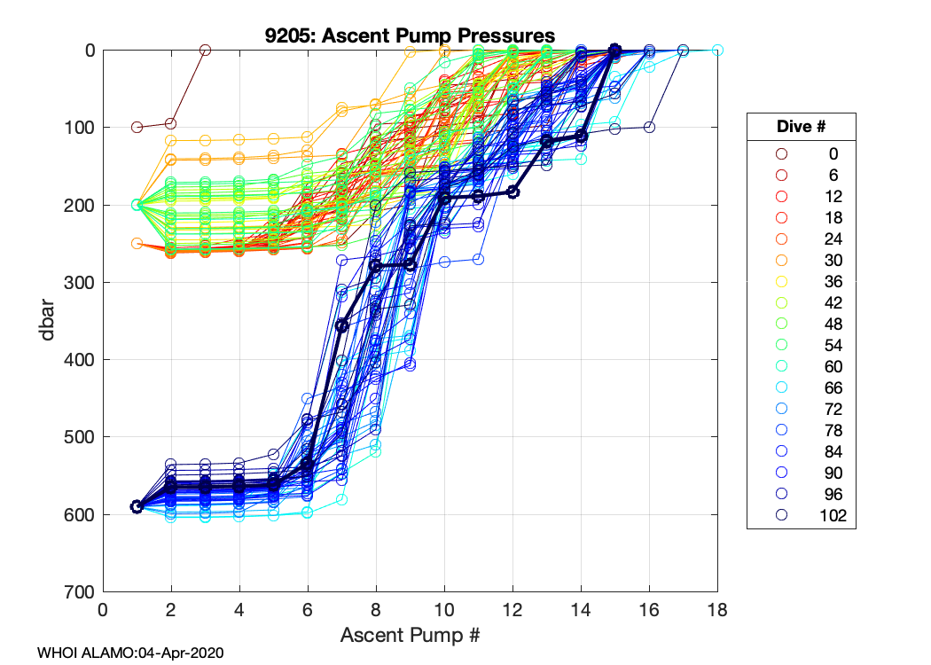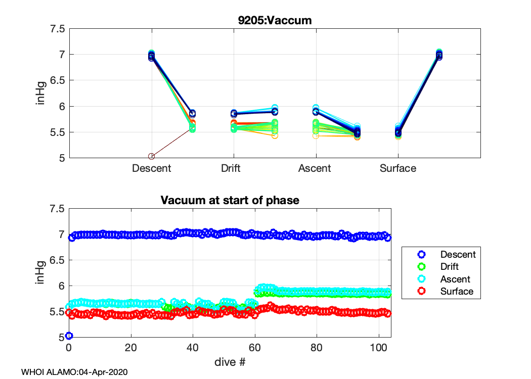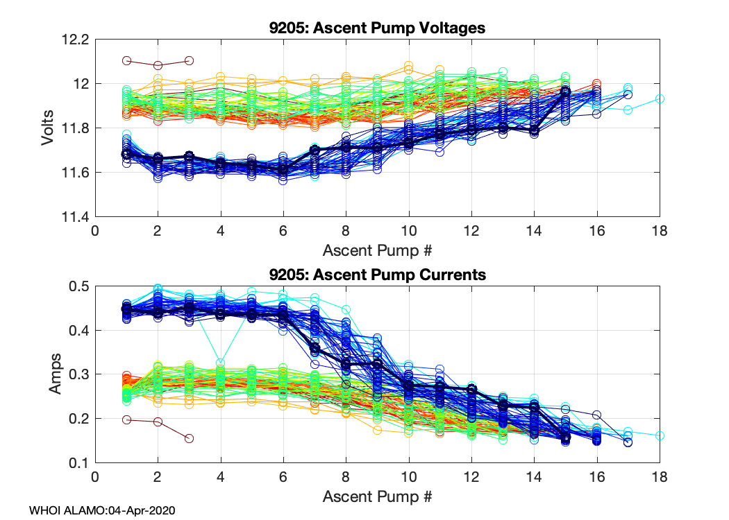ALAMO Float S/N: 9205 -- plots of RAW telemetry data