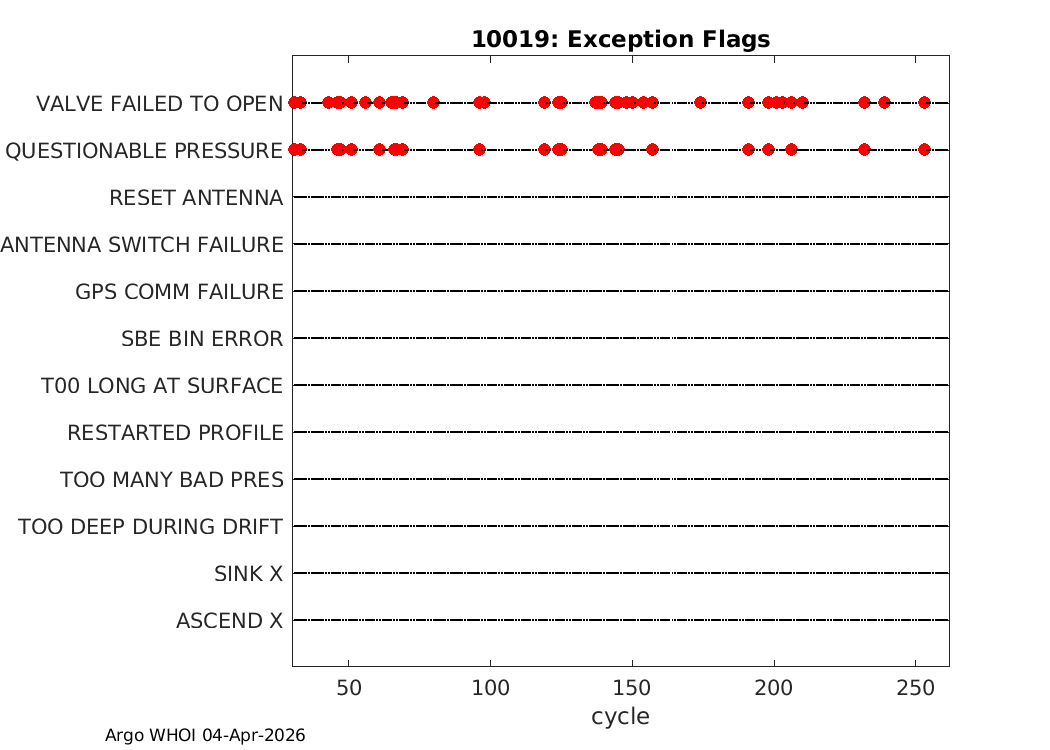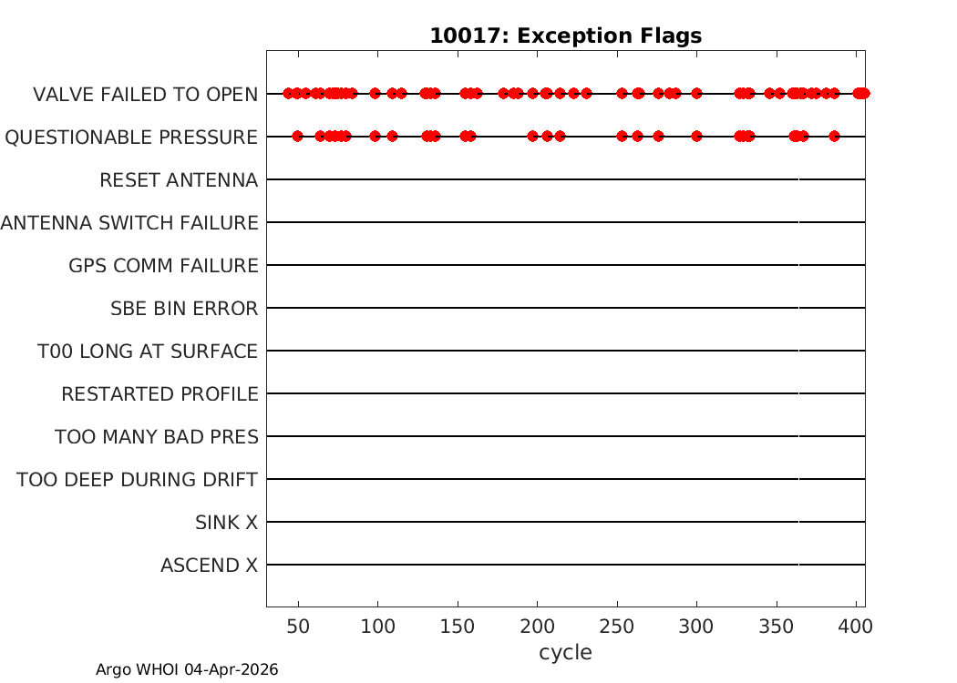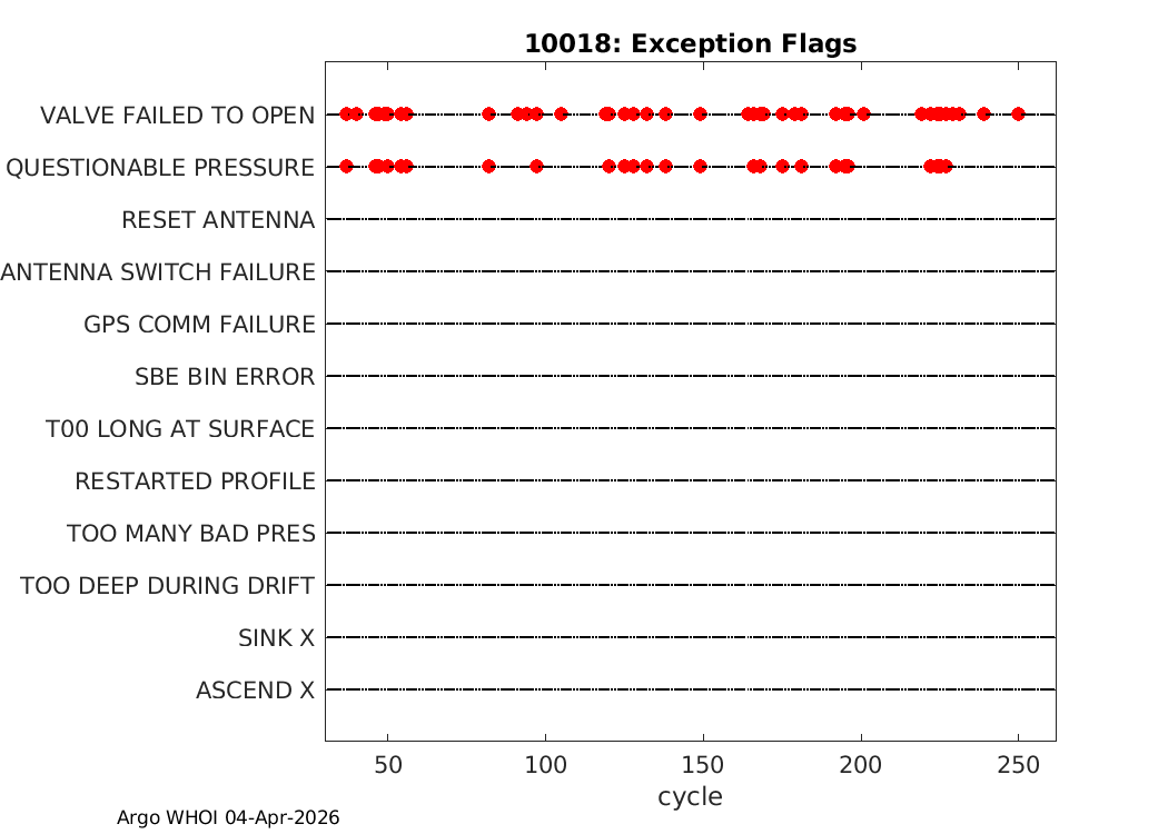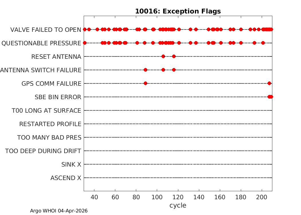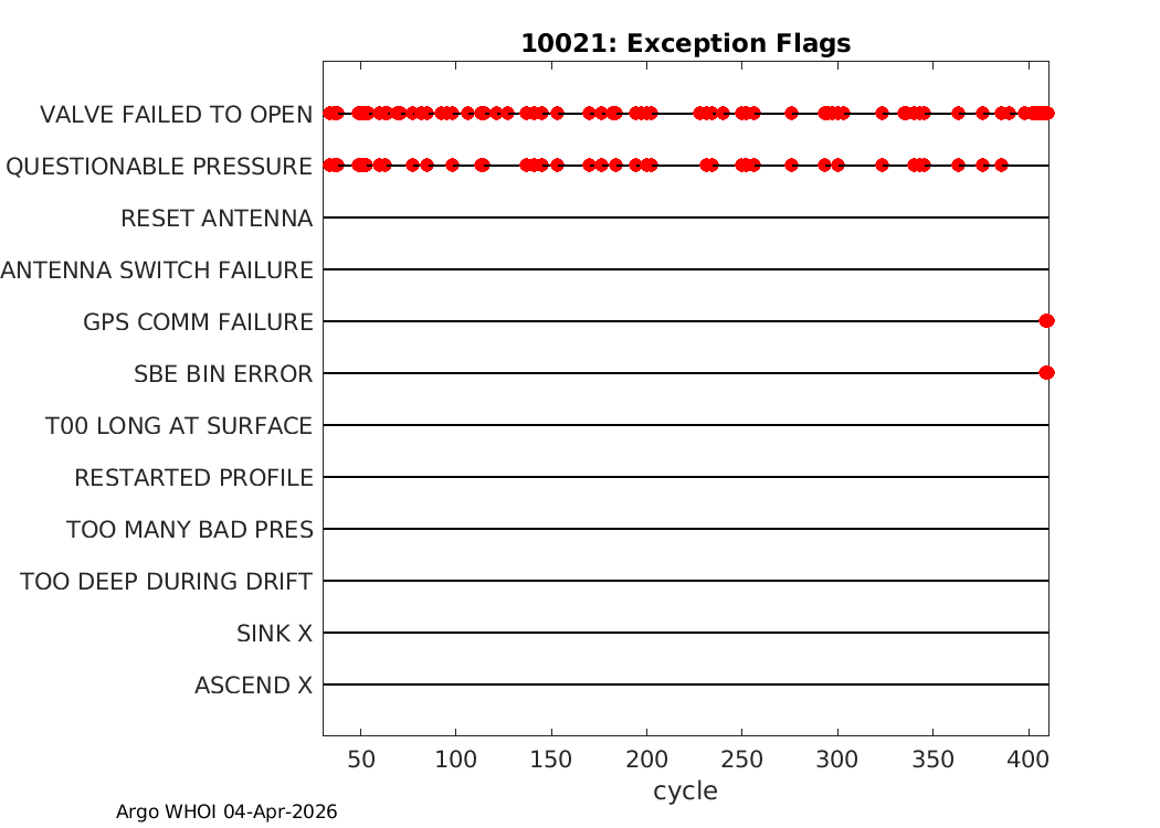 | Info | Profile Positions | Dive History | Energy | Telemetry | Iridium SBD | Ice Detect | Exception Flags |