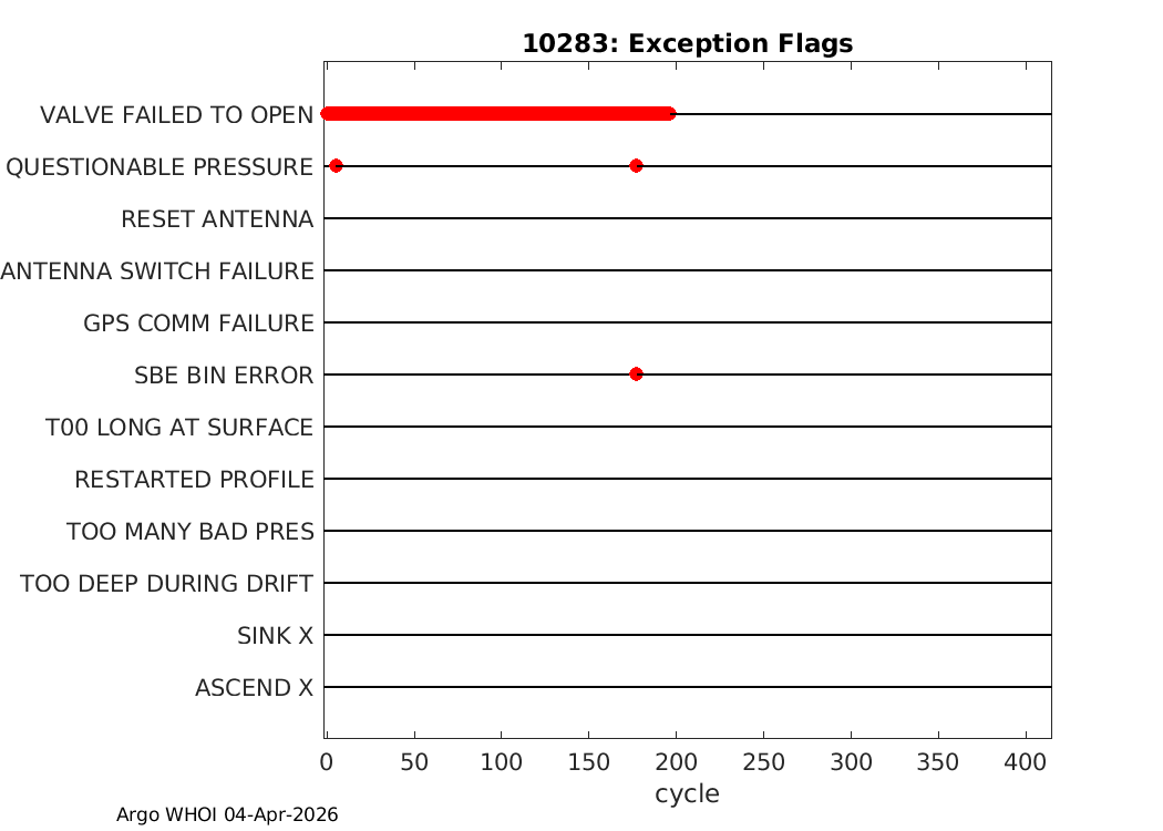 | Info | Profile Positions | Dive History | Energy | Telemetry | Iridium SBD | Ice Detect | Exception Flags |
