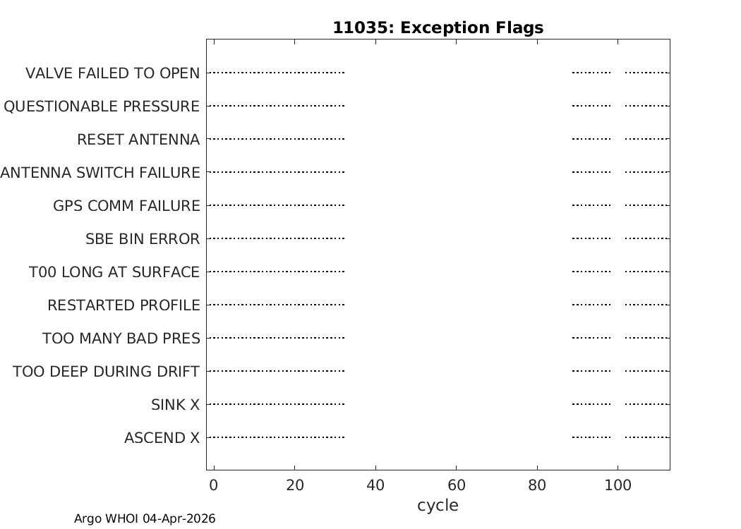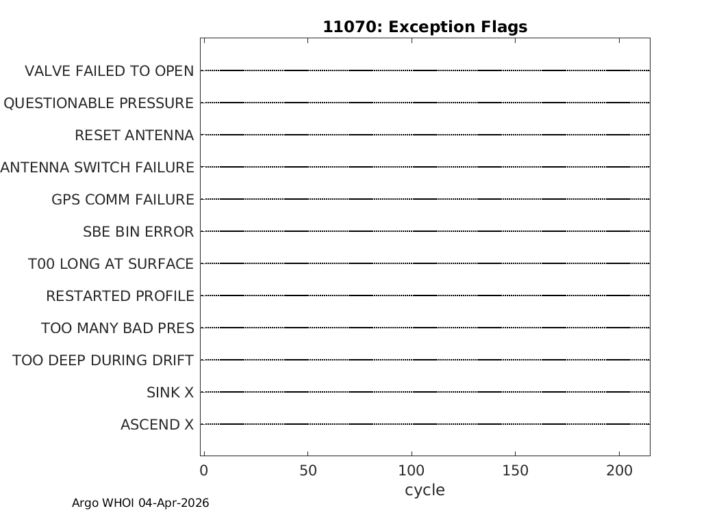 | Info | Profile Positions | Dive History | Energy | Telemetry | Iridium SBD | Ice Detect | Exception Flags |