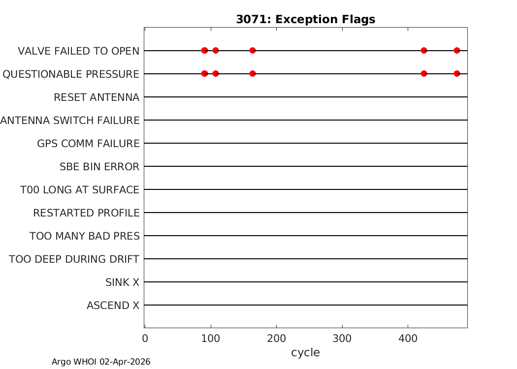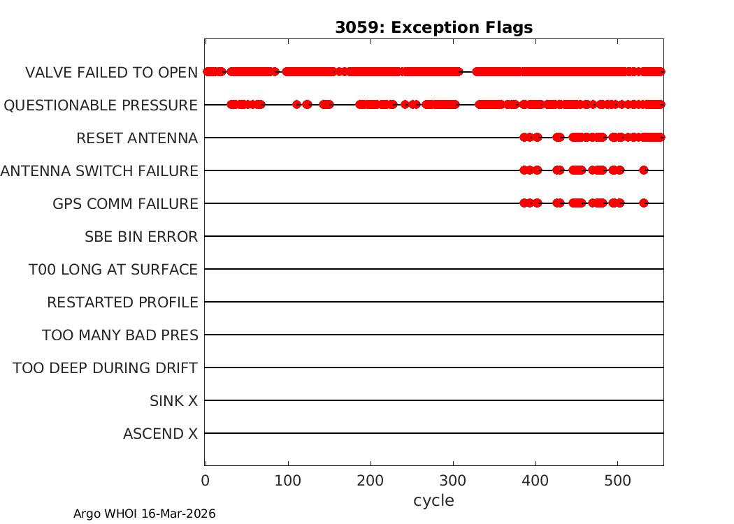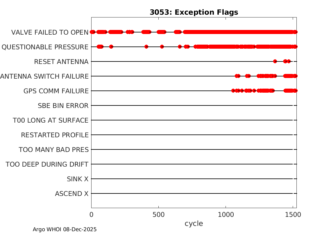 | Info | Profile Positions | Dive History | Energy | Telemetry | Iridium SBD | Ice Detect | Exception Flags |