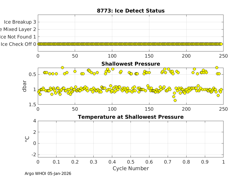 | SOLO_II: #8773 WMO: #4903016 Engineering Plots Fleet Monitor Deployed: 2019-06-03 Last report: 2026-01-04 SIO | ![]() |