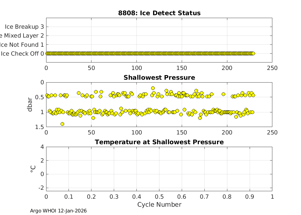 | SOLO_II: #8838 WMO: #3902190 Engineering Plots Fleet Monitor Deployed: 2020-01-11 Last report: 2026-01-12 SIO | ![]() |