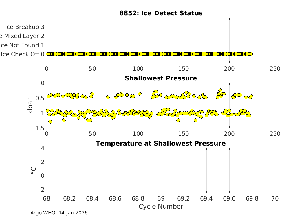 | SOLO_II: #8852 WMO: #5906137 Engineering Plots Fleet Monitor Deployed: 2020-01-30 Last report: 2026-01-12 PI: Phil SUTTON | ![]() |