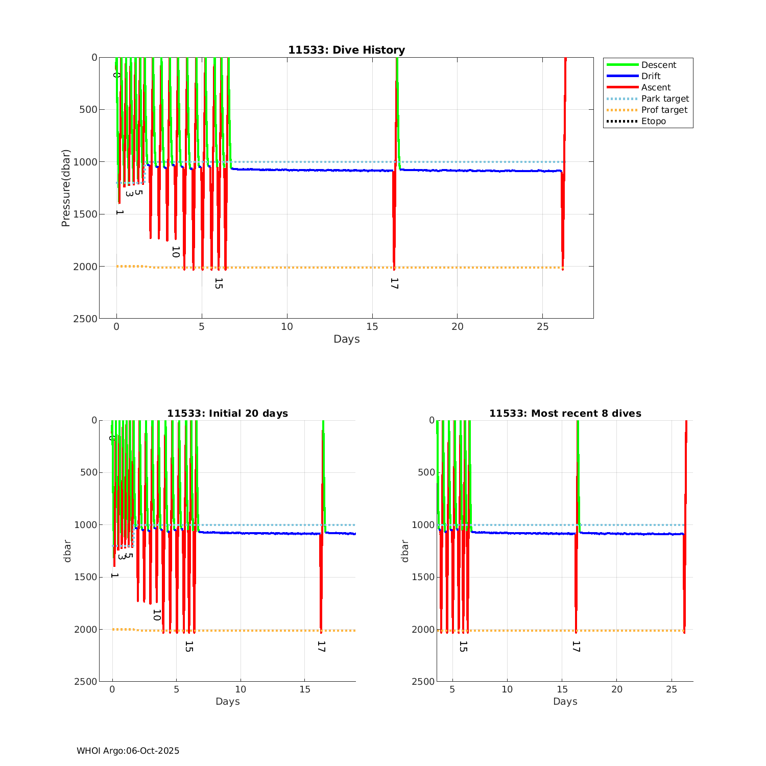 | ALTO: #11533 WMO: #5906857 Engineering Plots Fleet Monitor Deployed: 2024-09-24 Last report: 2024-10-21 PMEL | ![]() |