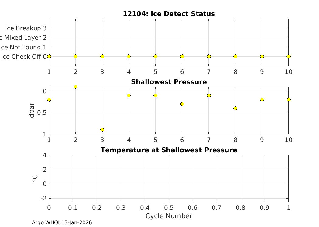 | SOLO_D MRV: #12104 WMO: #5906877 Engineering Plots Fleet Monitor Deployed: 2025-12-01 Last report: 2026-01-13 PMEL | ![]() |