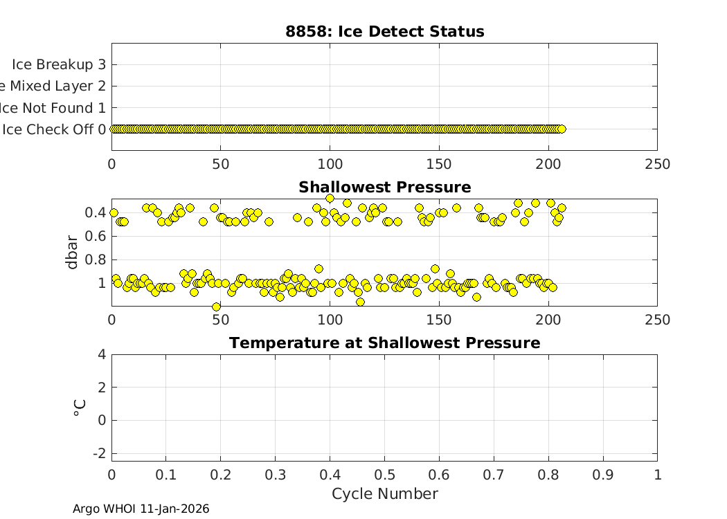 | SOLO_II: #8858 WMO: #5906140 Engineering Plots Fleet Monitor Deployed: 2020-08-13 Last report: 2026-01-11 SIO | ![]() |
