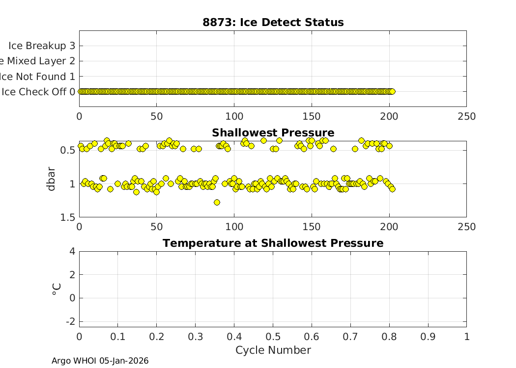 | SOLO_II: #8874 WMO: #4903399 Engineering Plots Fleet Monitor Deployed: 2020-11-05 Last report: 2026-01-08 SIO | ![]() |