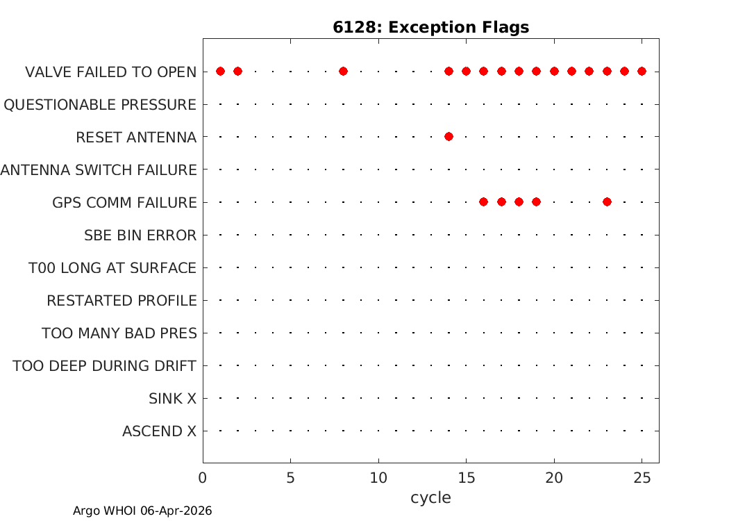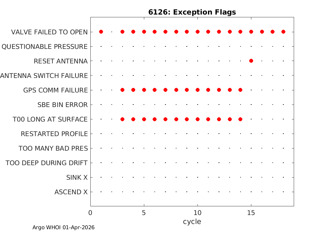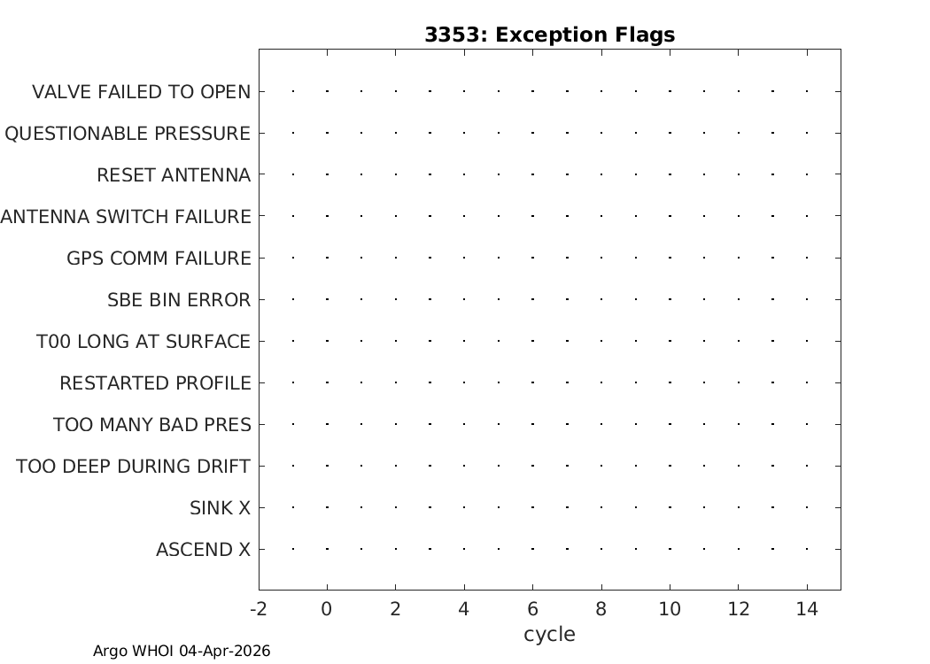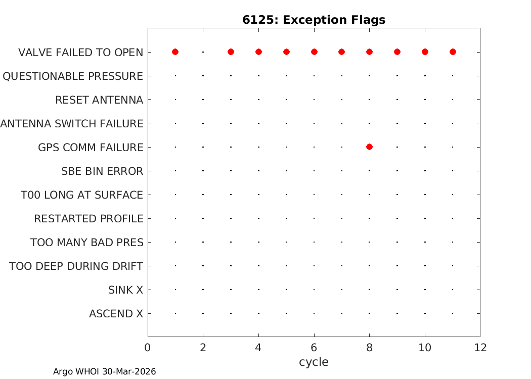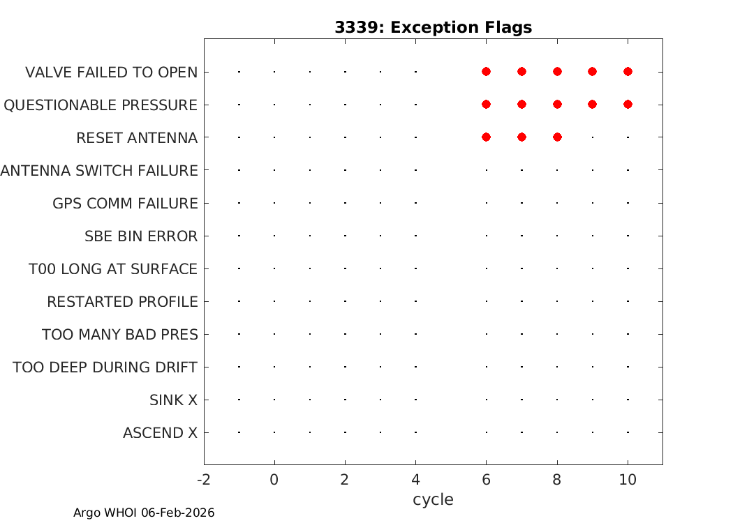 | Info | Profile Positions | Dive History | Energy | Telemetry | Iridium SBD | Ice Detect | Exception Flags |