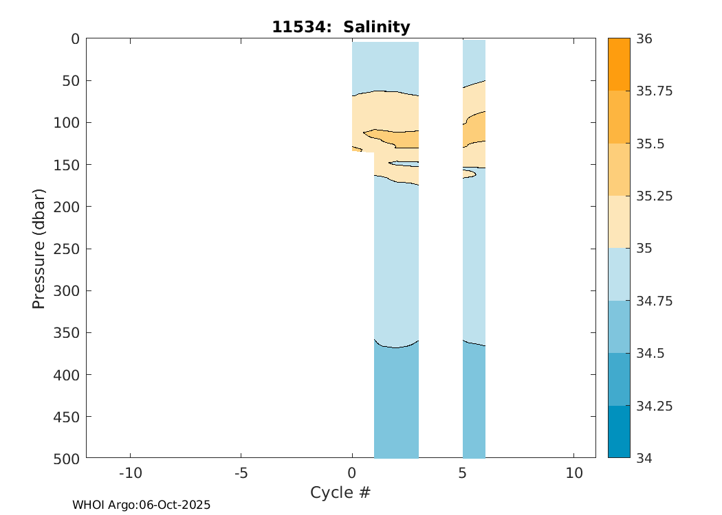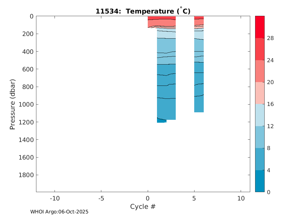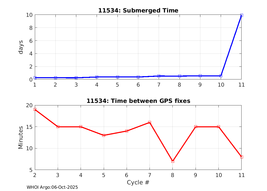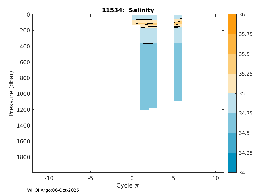 Argo Float: 11534 -- Plots based on telemetry data decoded at WHOI