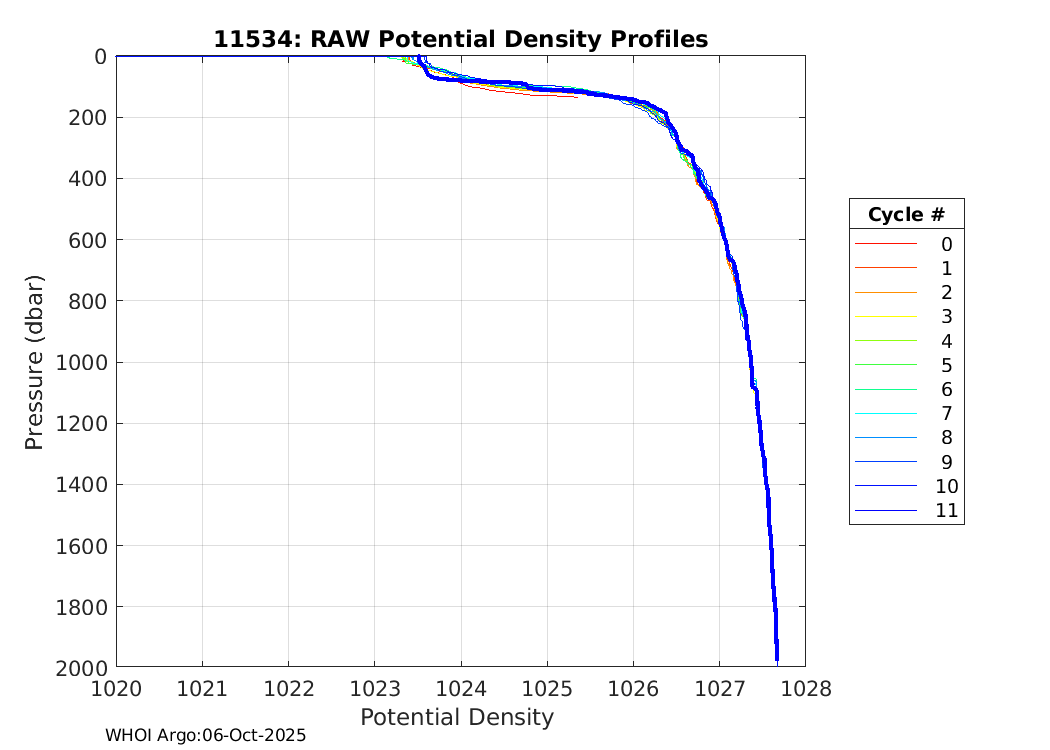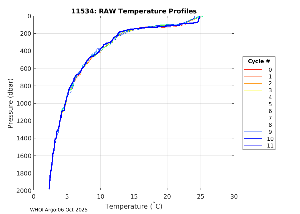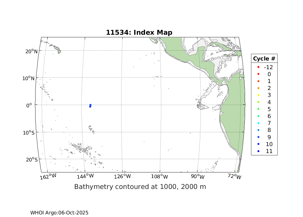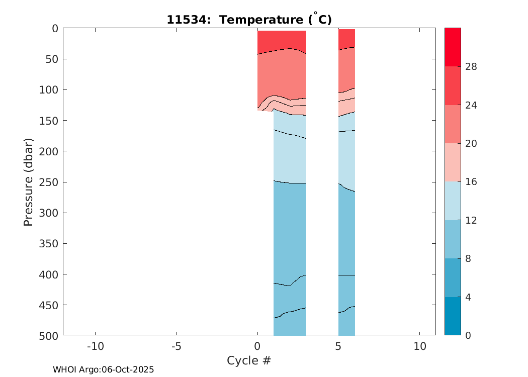 Argo Float: 11534 -- Plots based on telemetry data decoded at WHOI