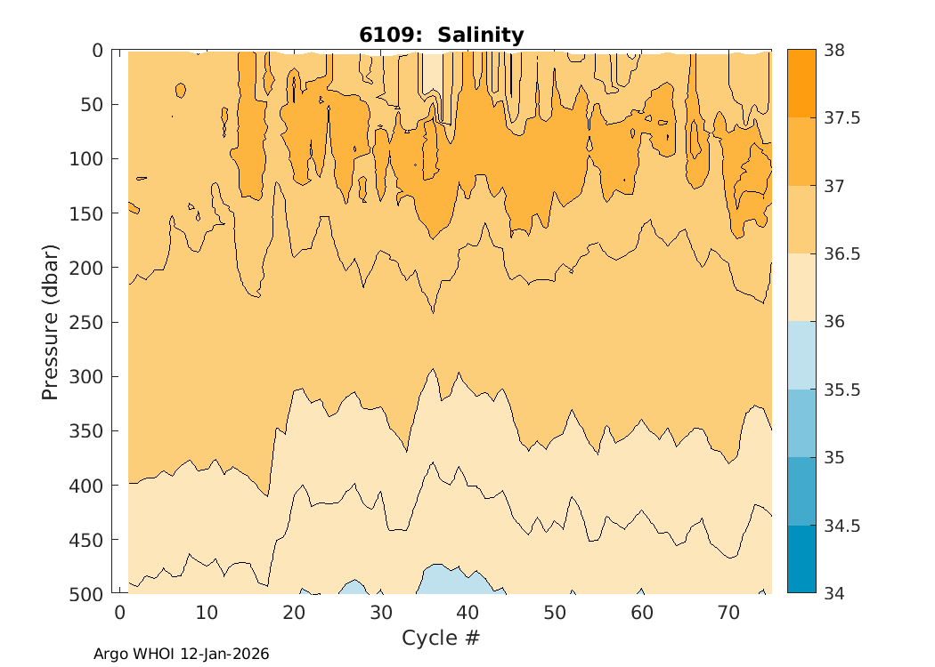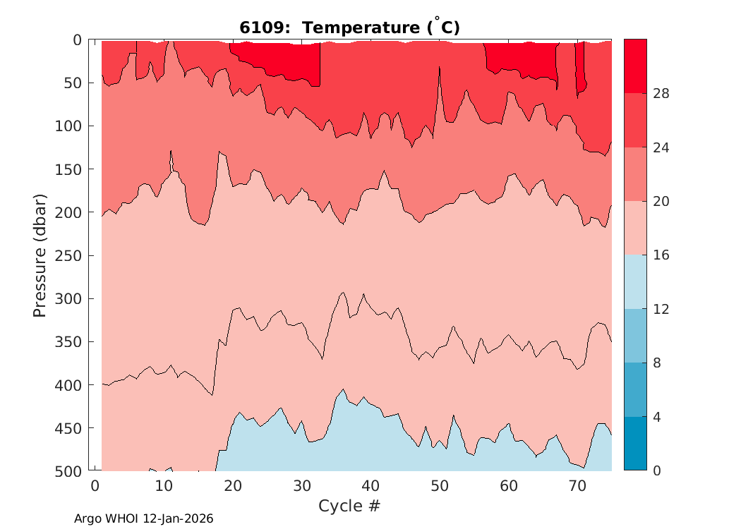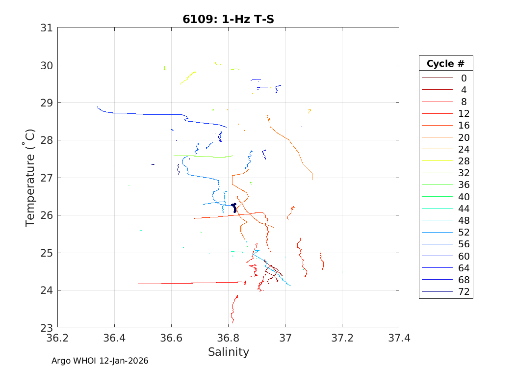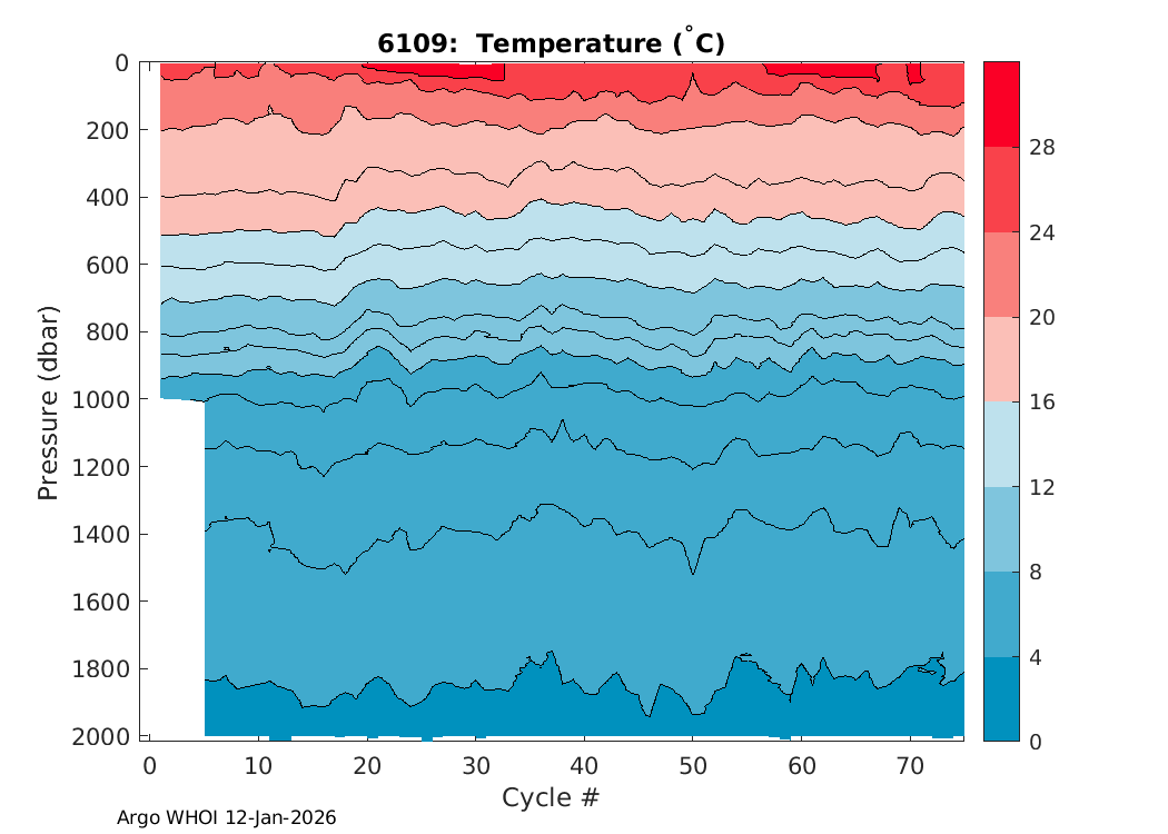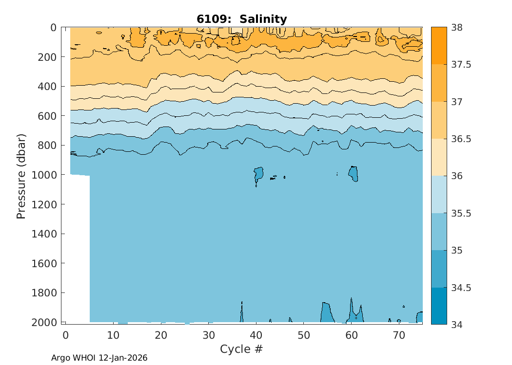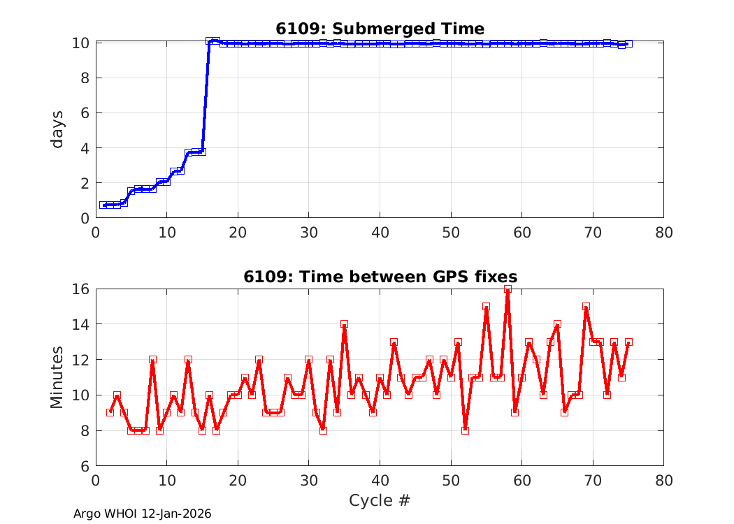 Argo Float: 6109 -- Plots based on telemetry data decoded at WHOI