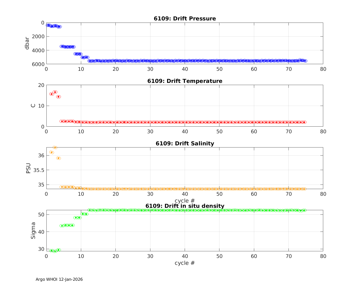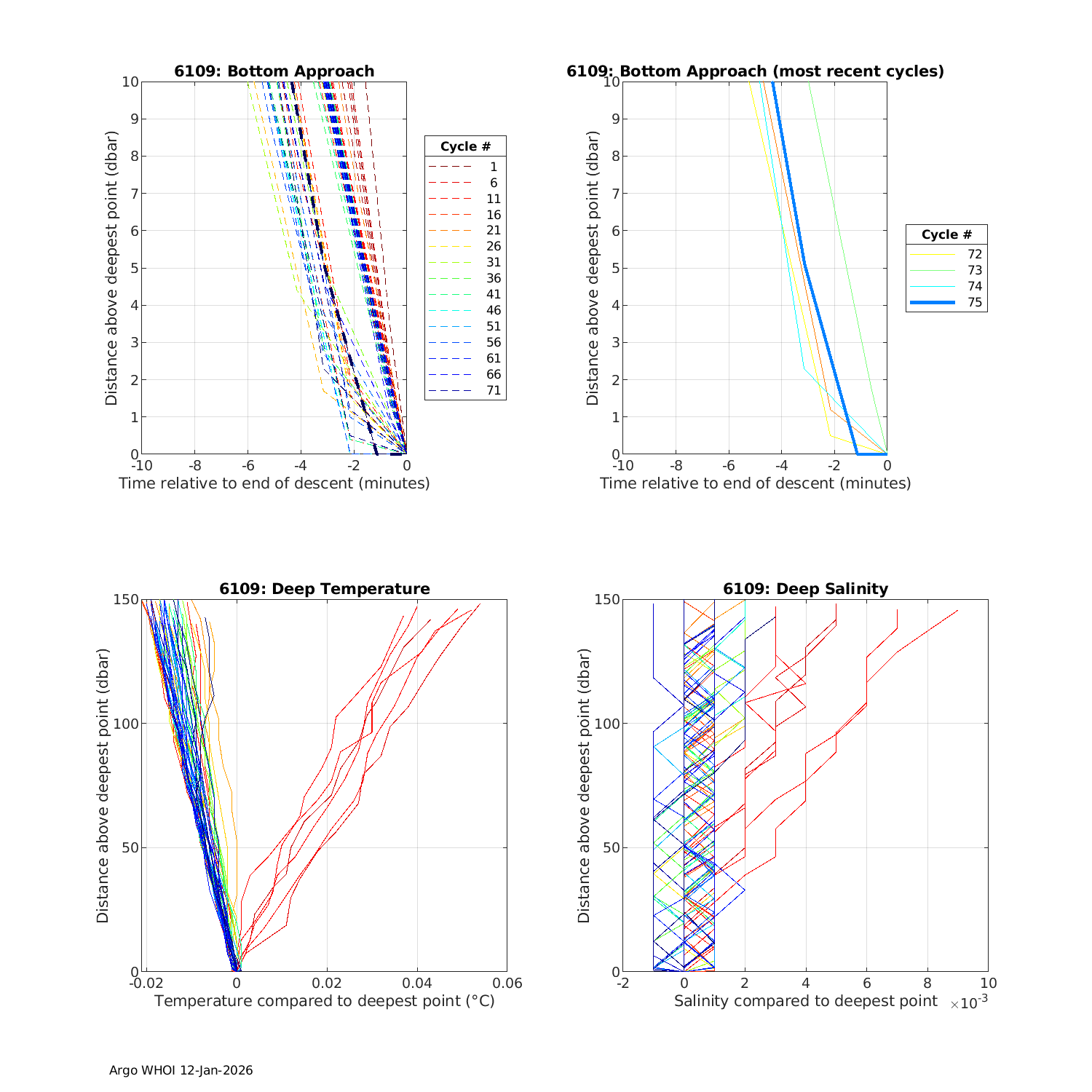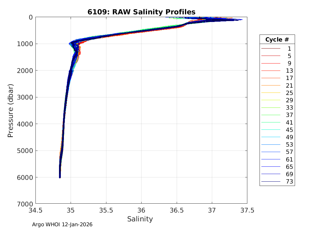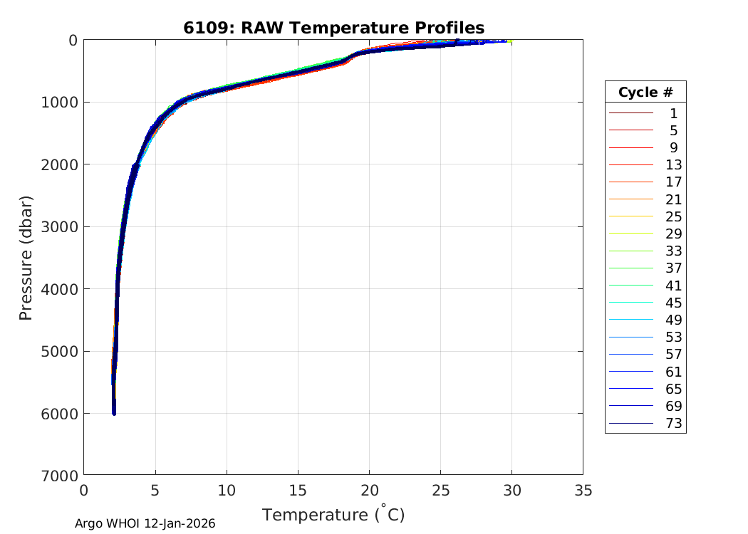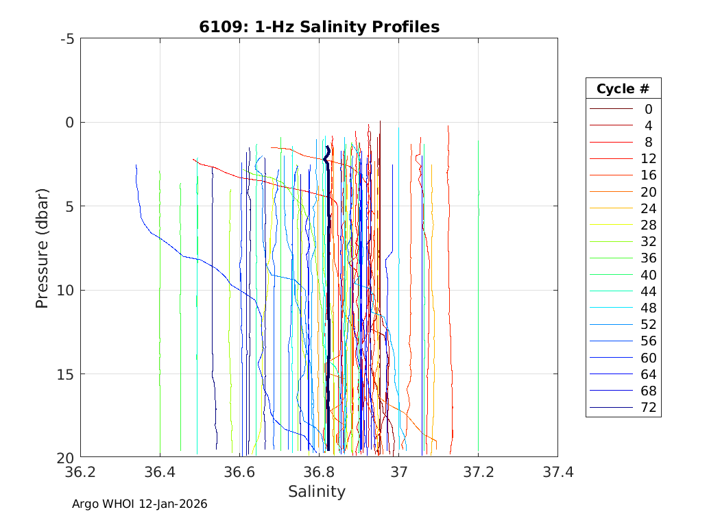 Argo Float: 6109 -- Plots based on telemetry data decoded at WHOI