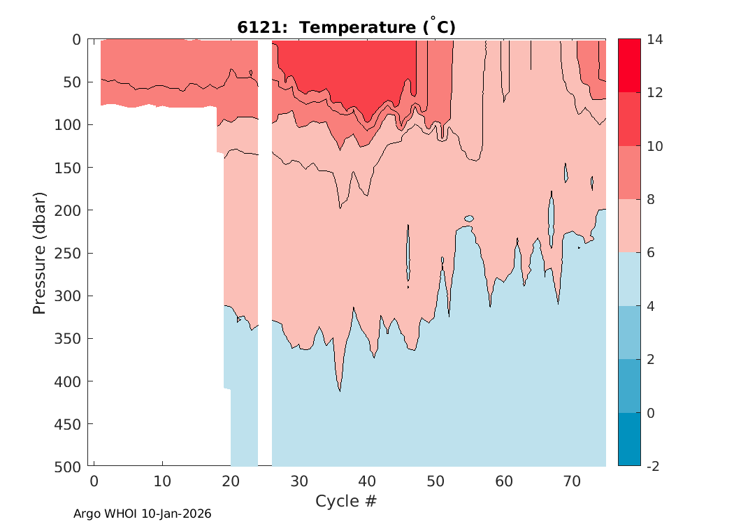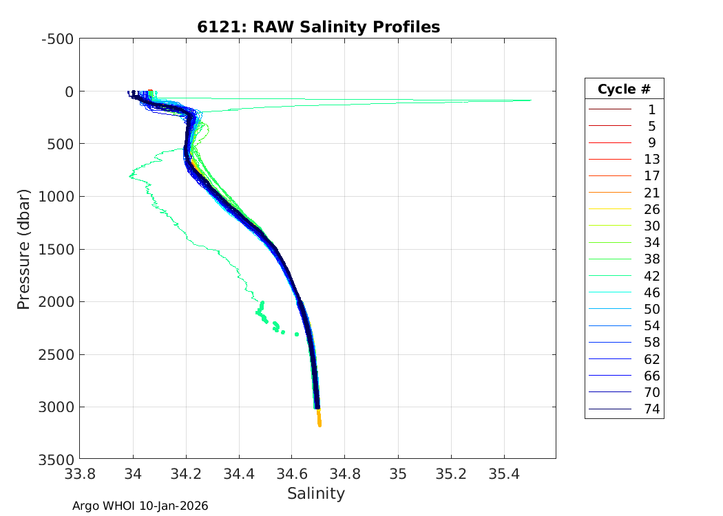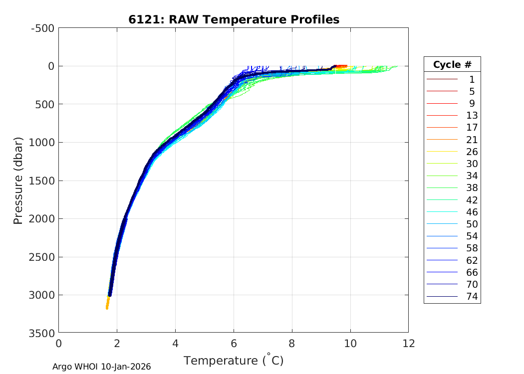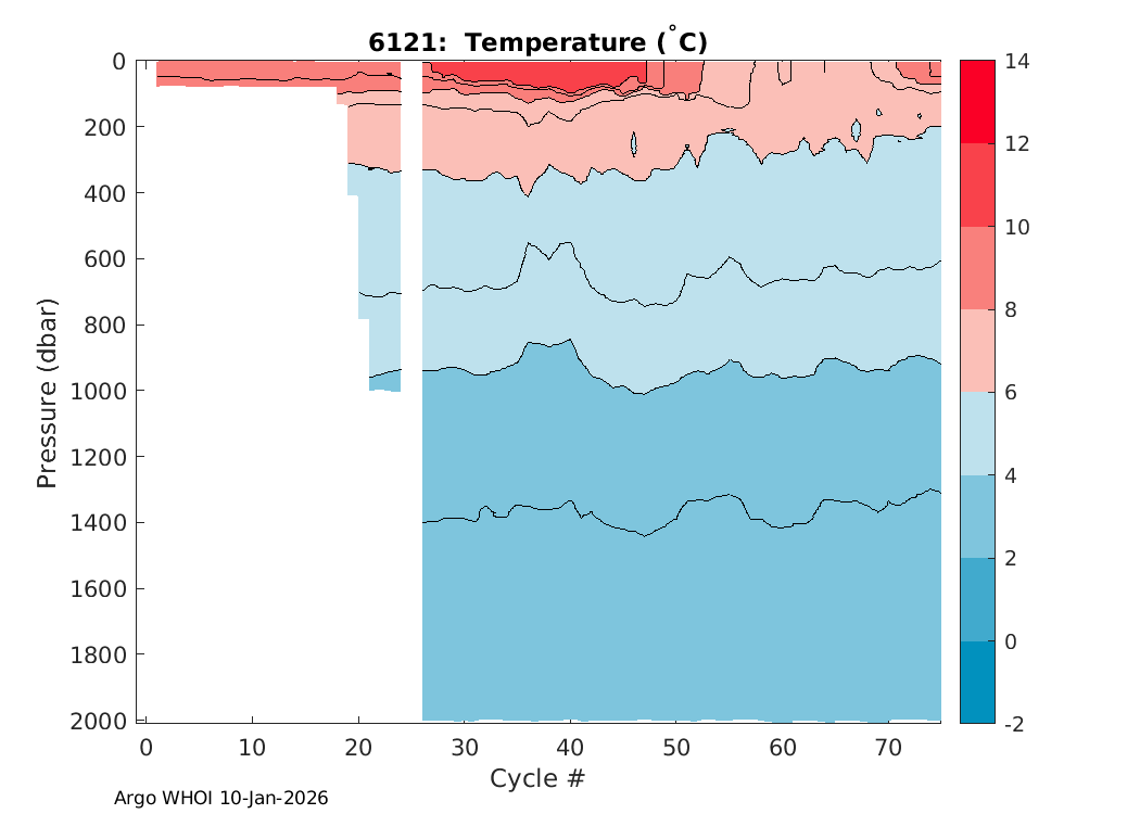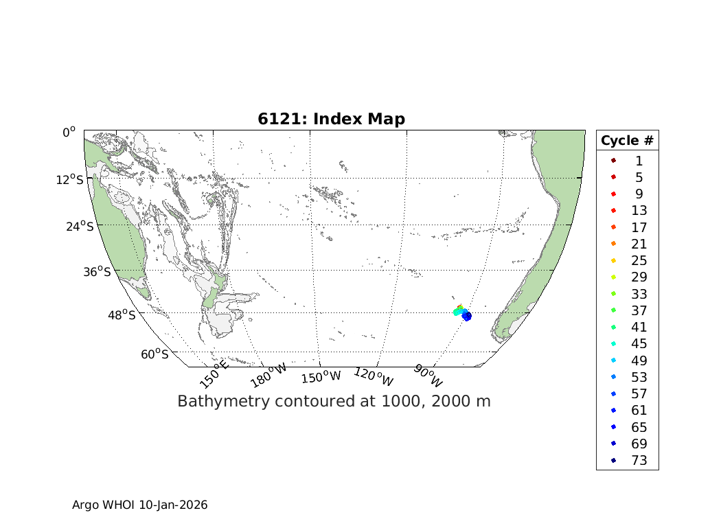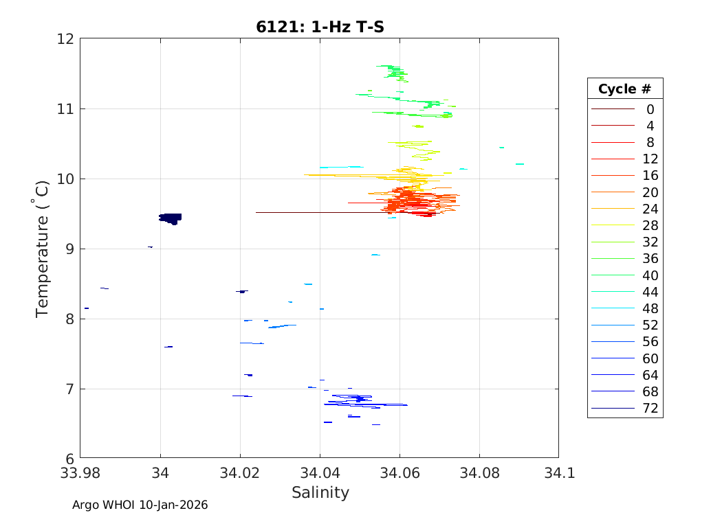 Argo Float: 6121 -- Plots based on telemetry data decoded at WHOI