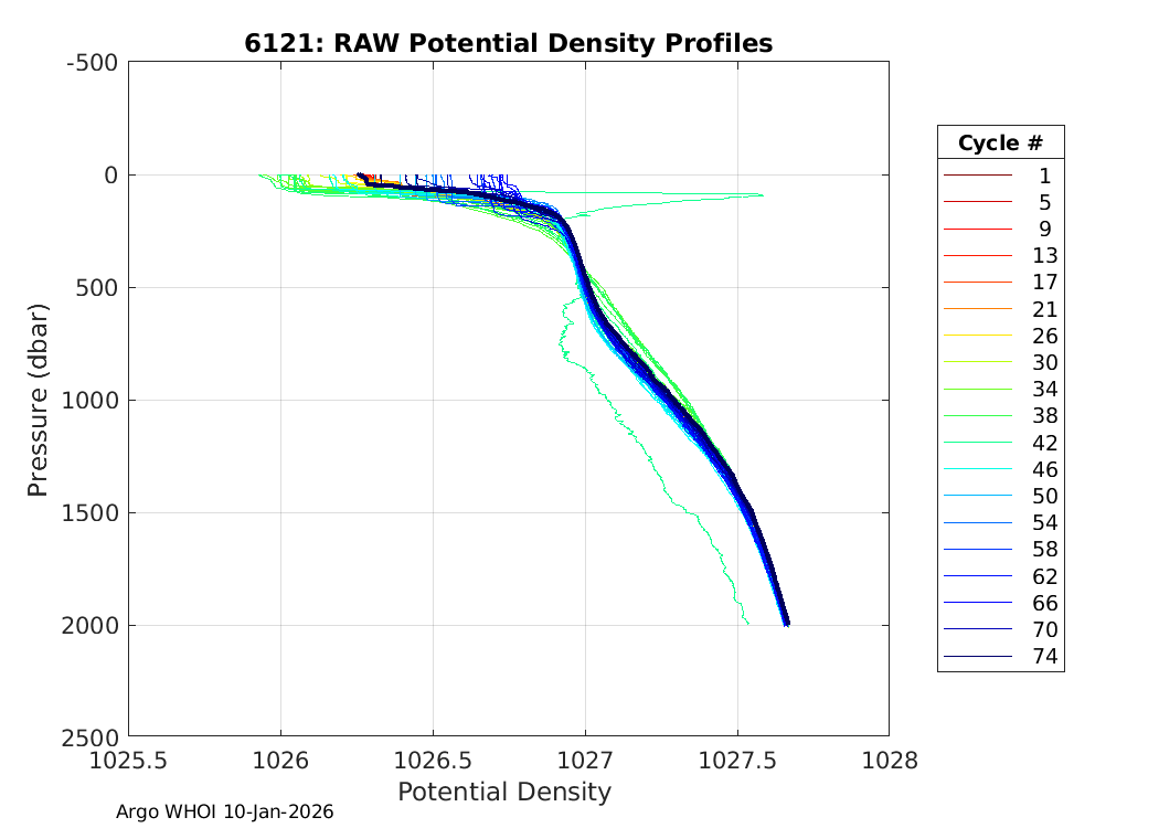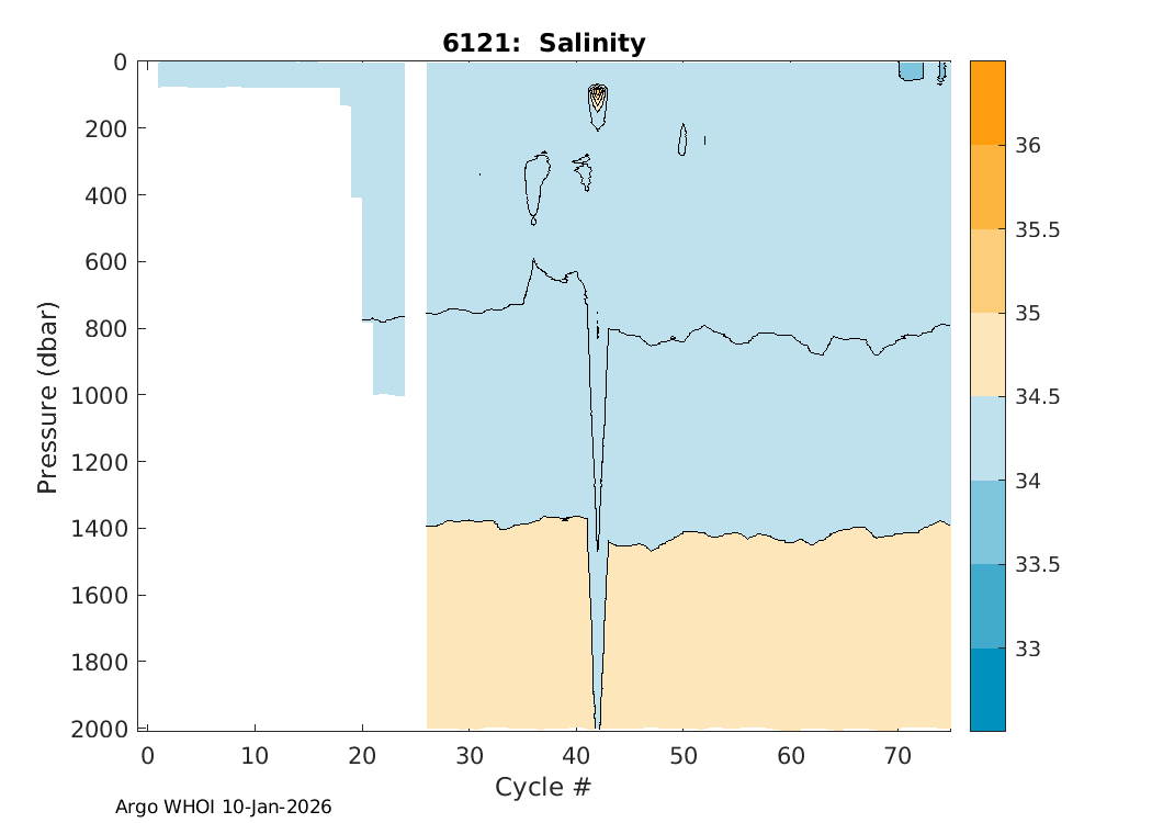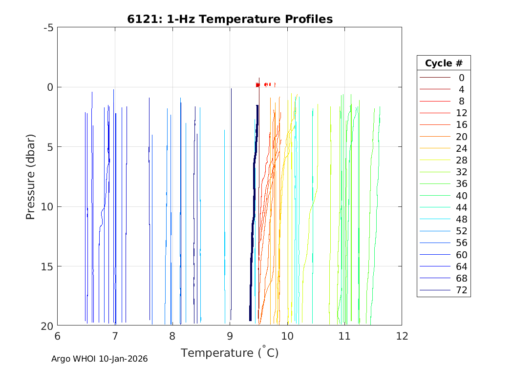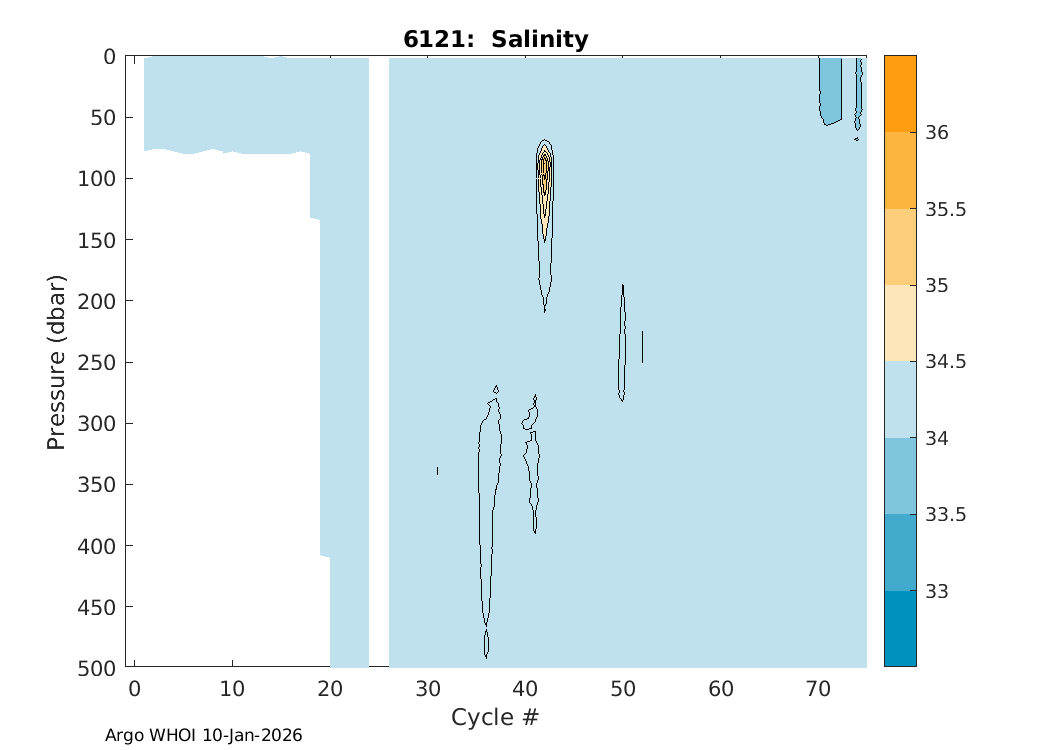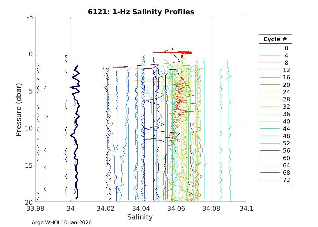 Argo Float: 6121 -- Plots based on telemetry data decoded at WHOI