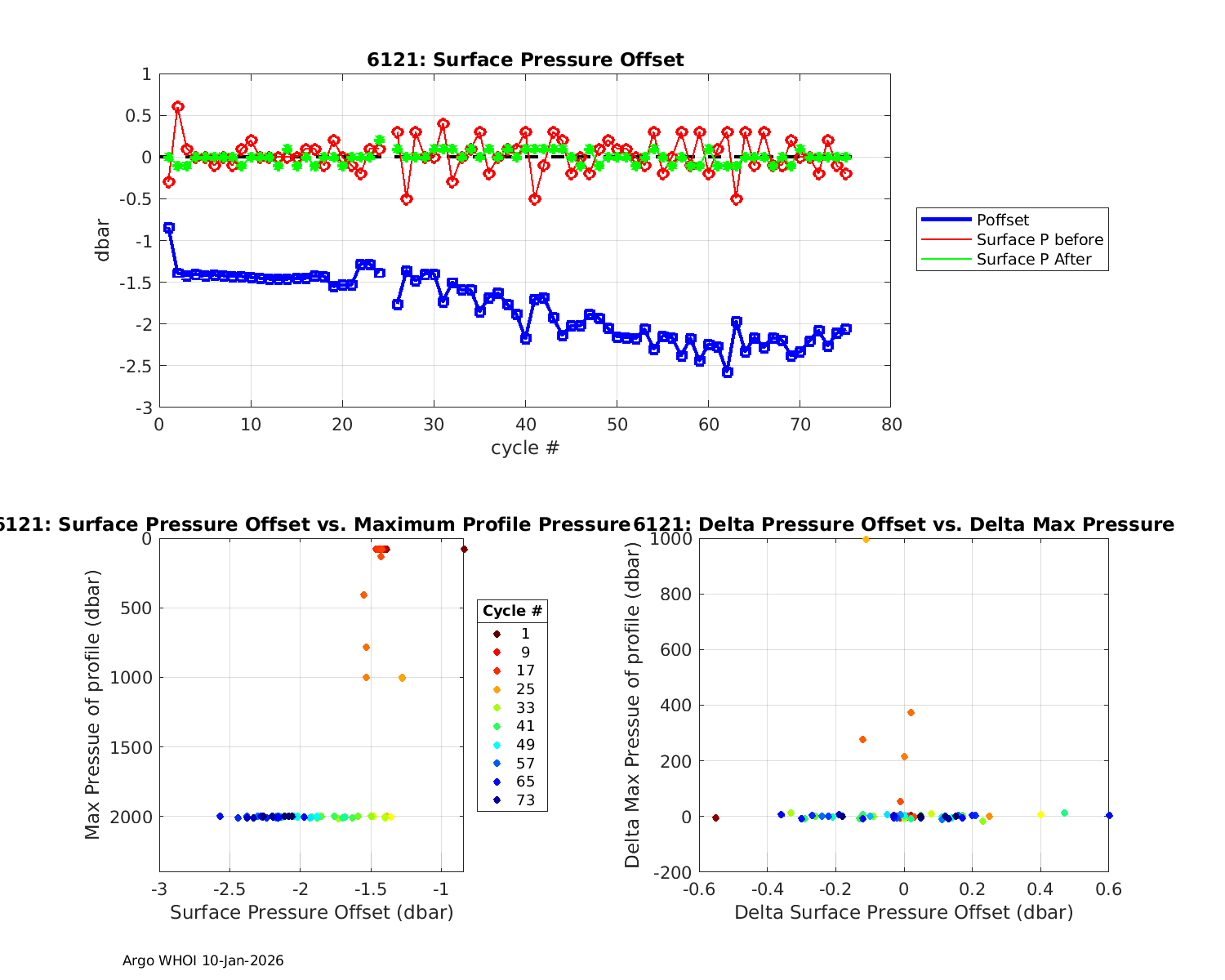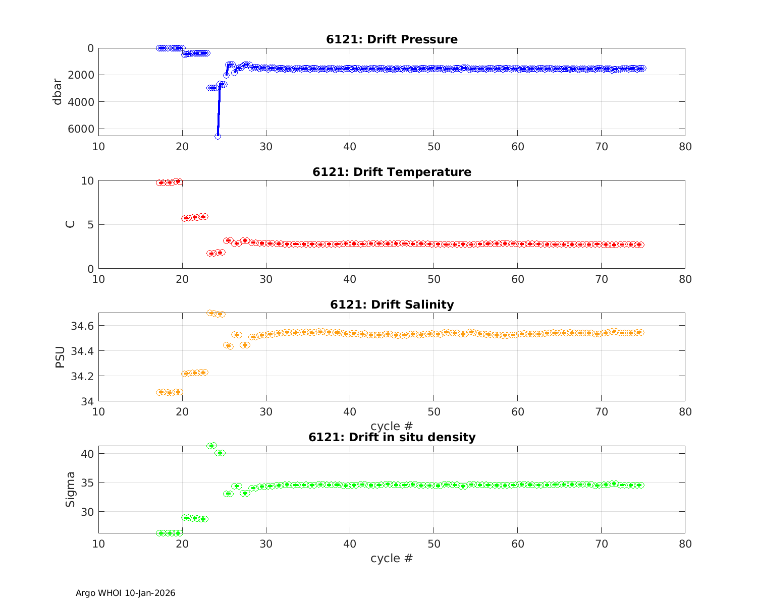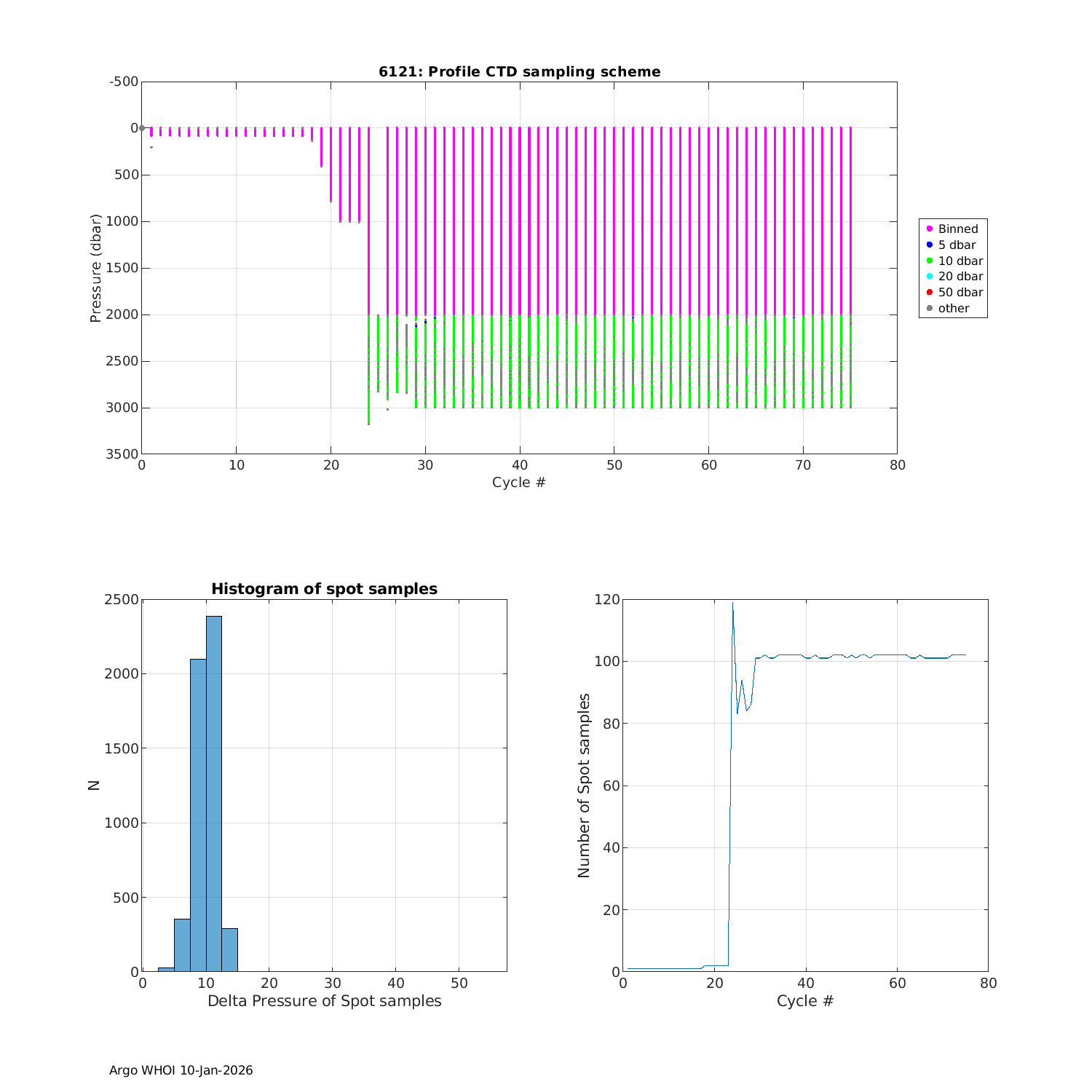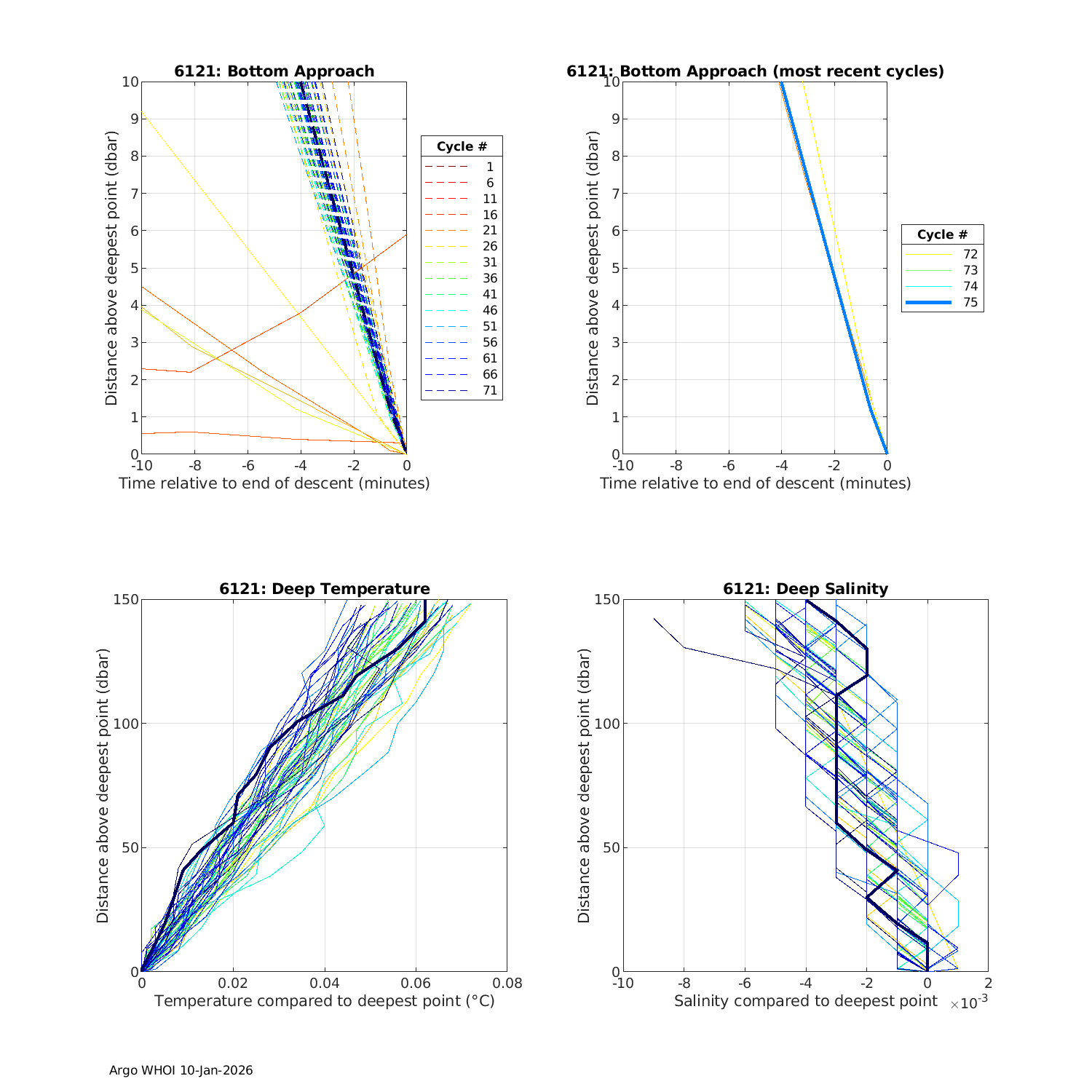 Argo Float: 6121 -- Plots based on telemetry data decoded at WHOI