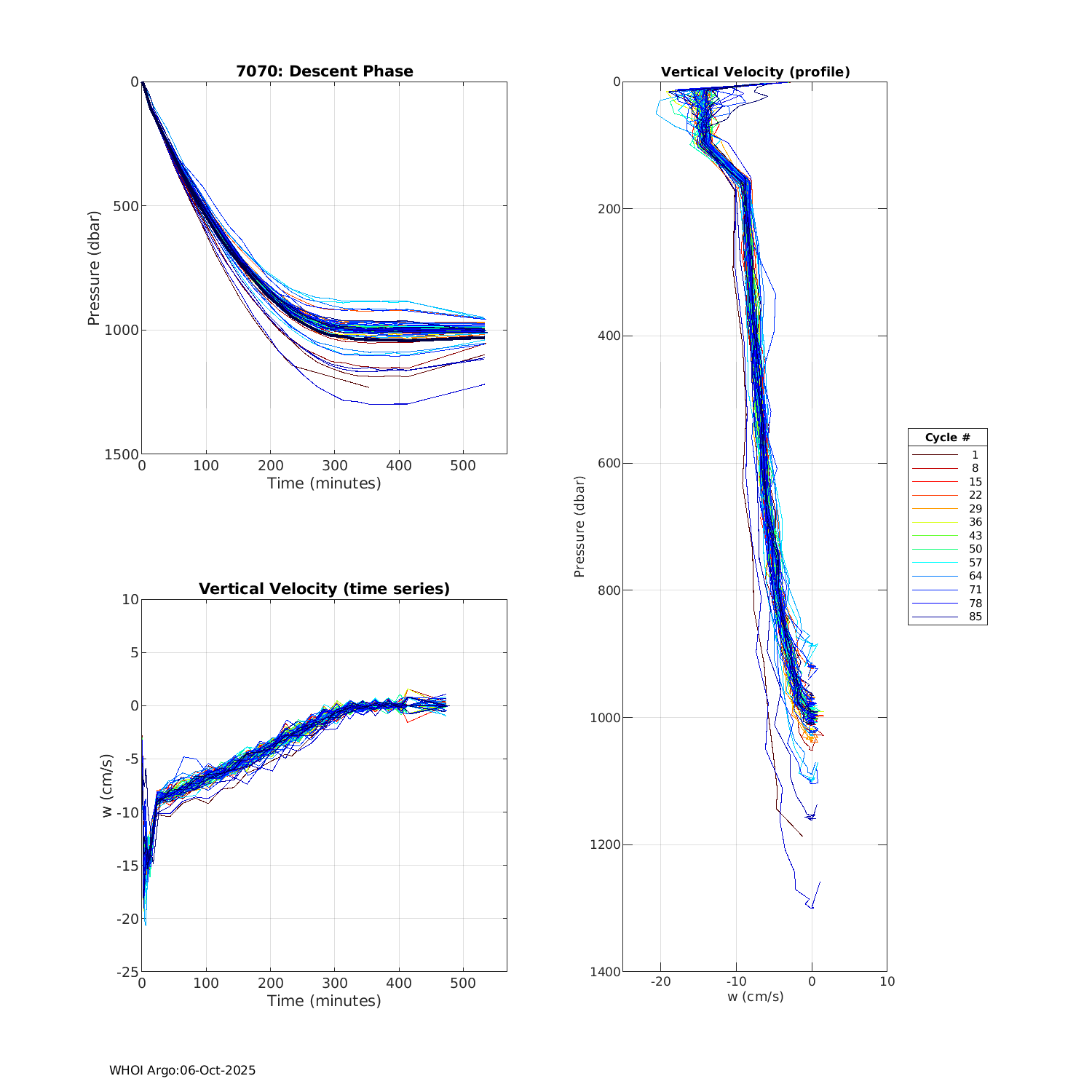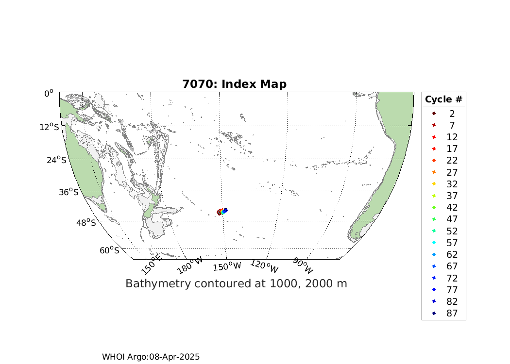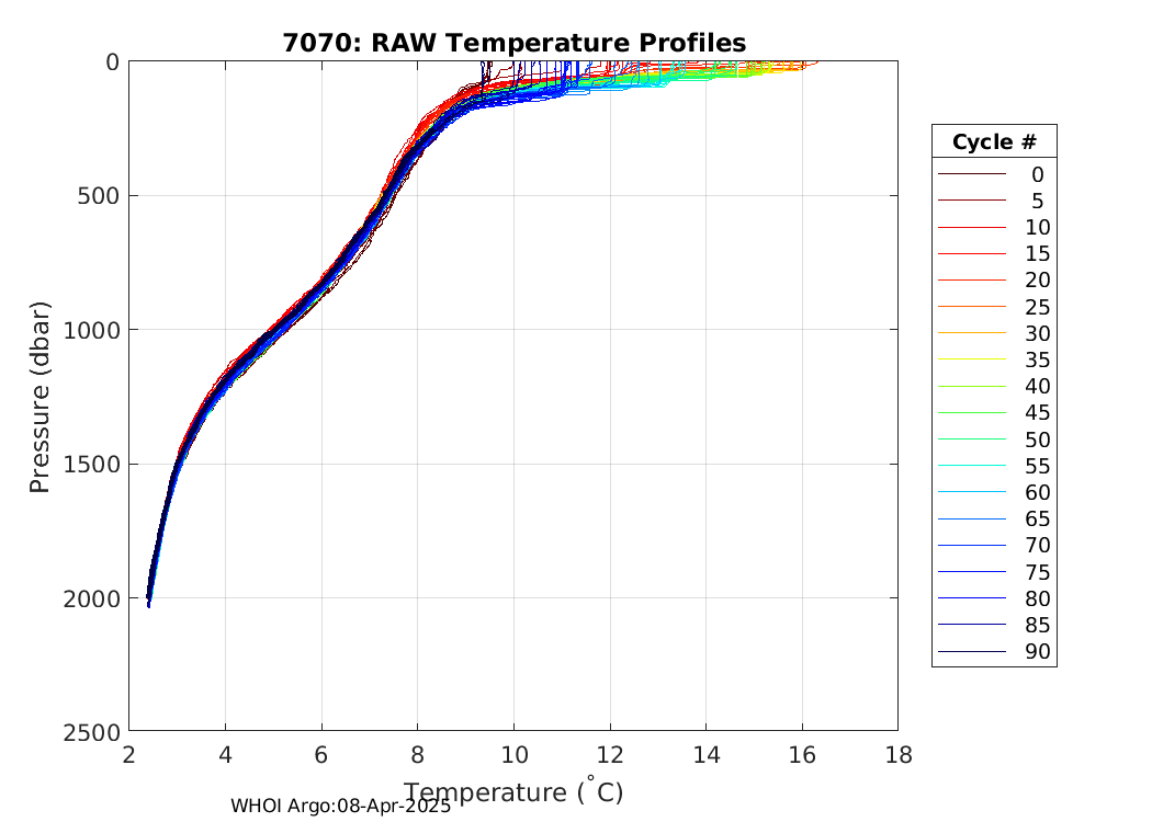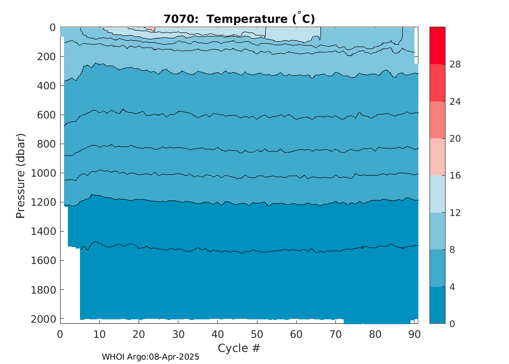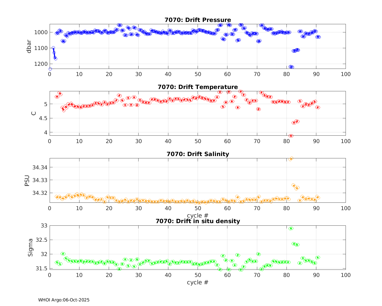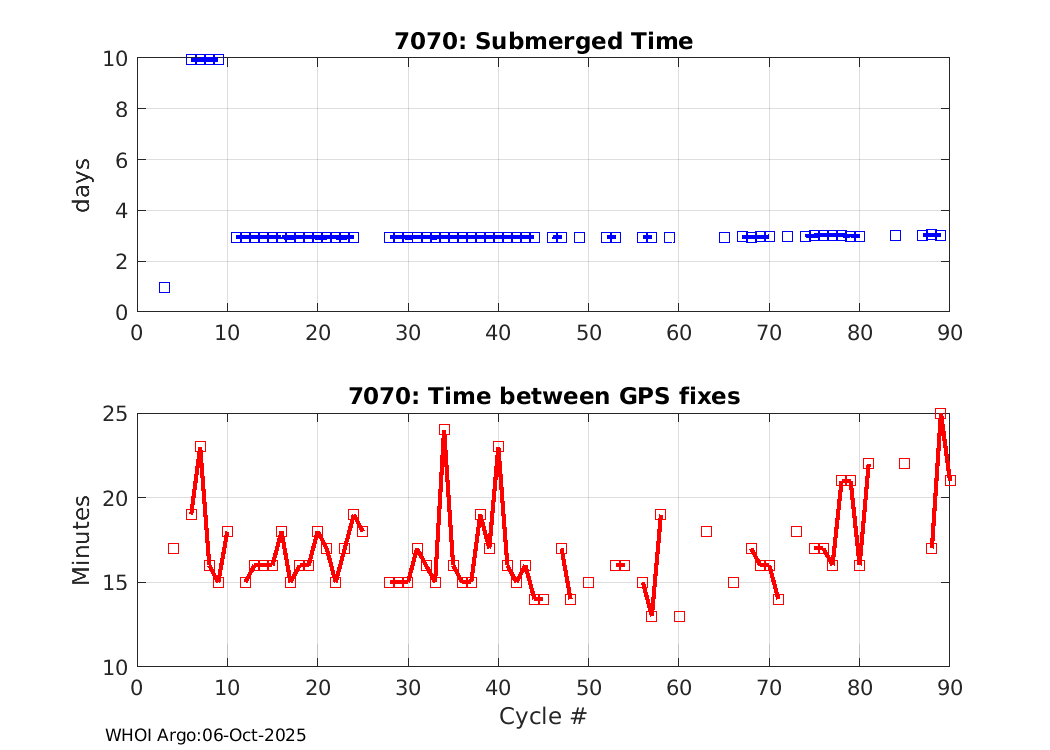 Argo Float: 7070 -- Plots based on telemetry data decoded at WHOI