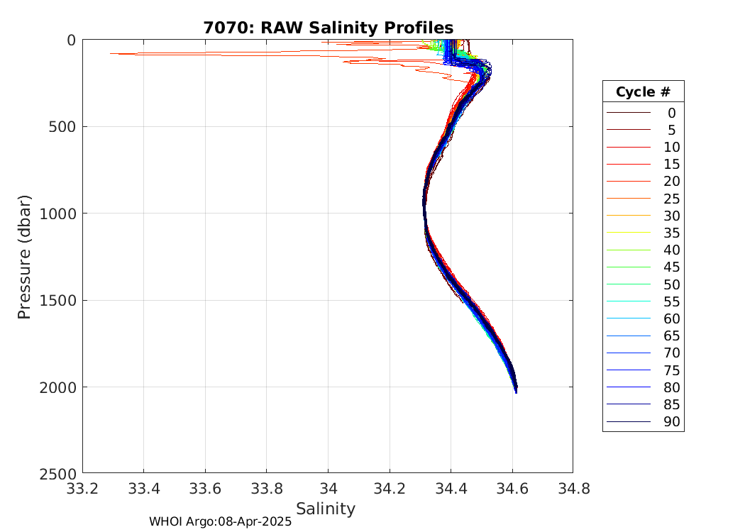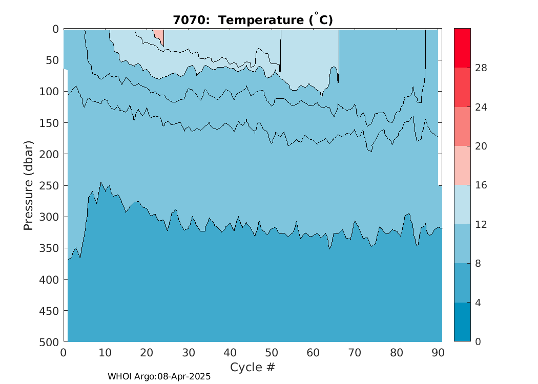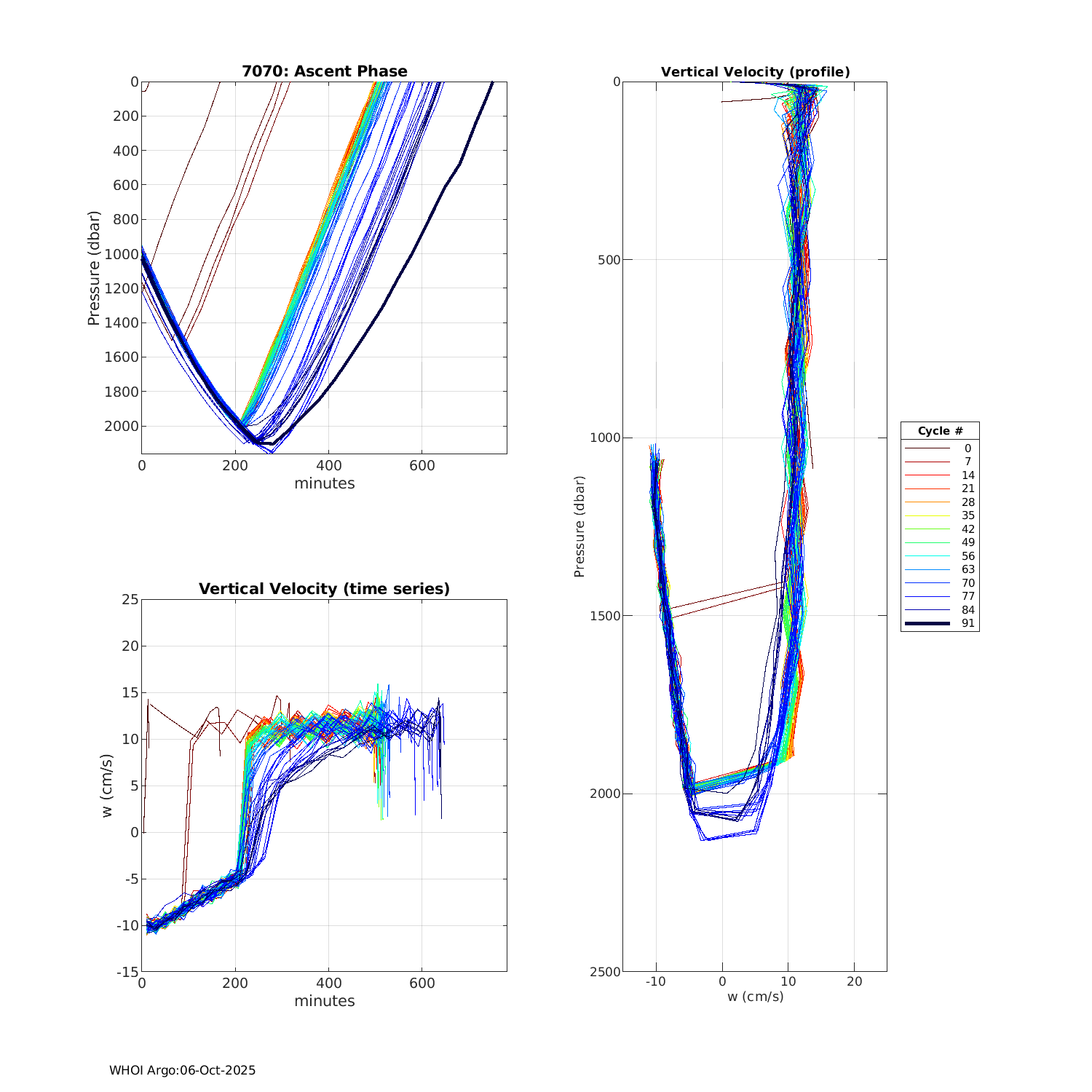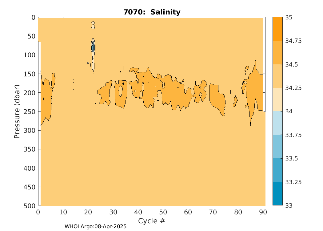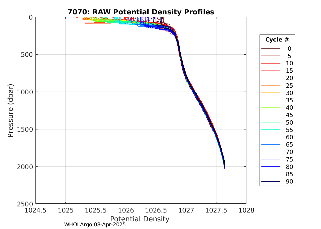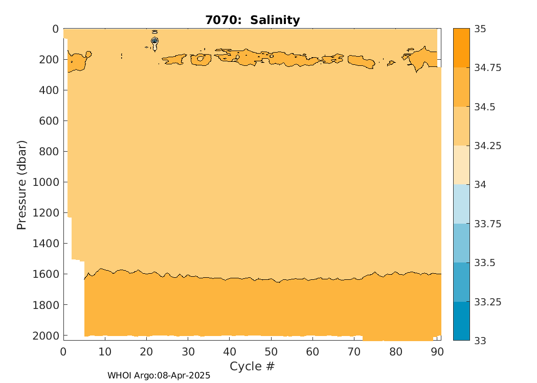 Argo Float: 7070 -- Plots based on telemetry data decoded at WHOI