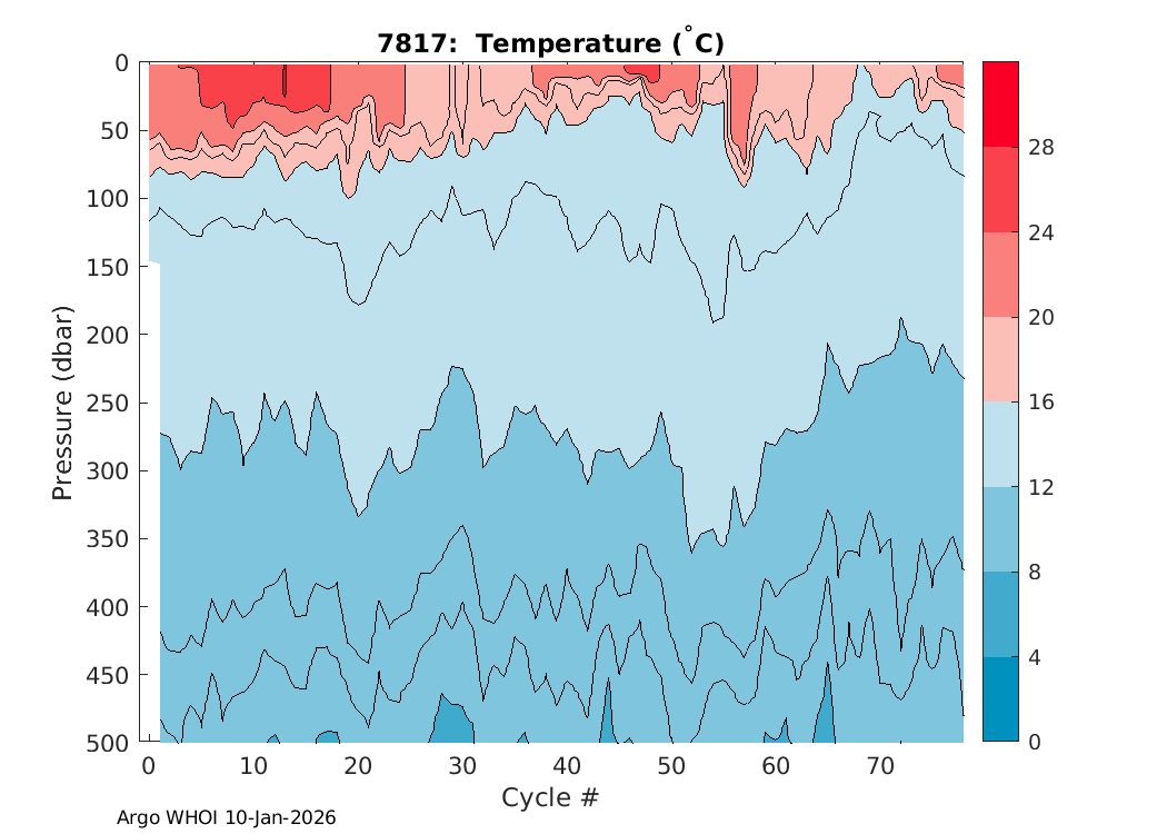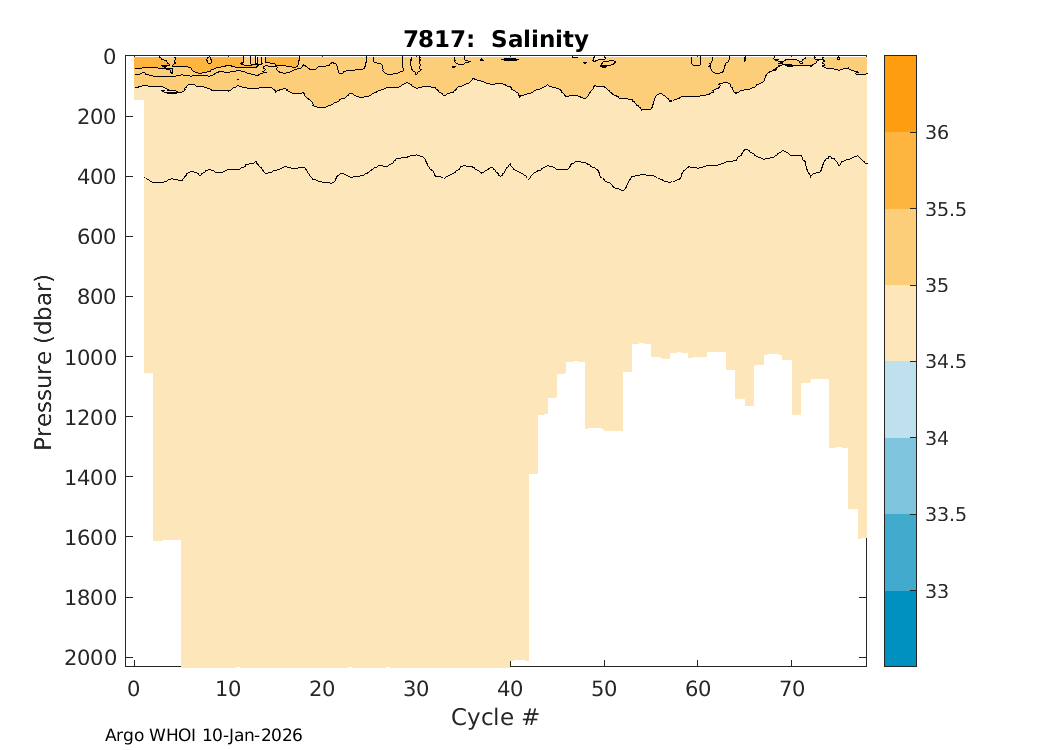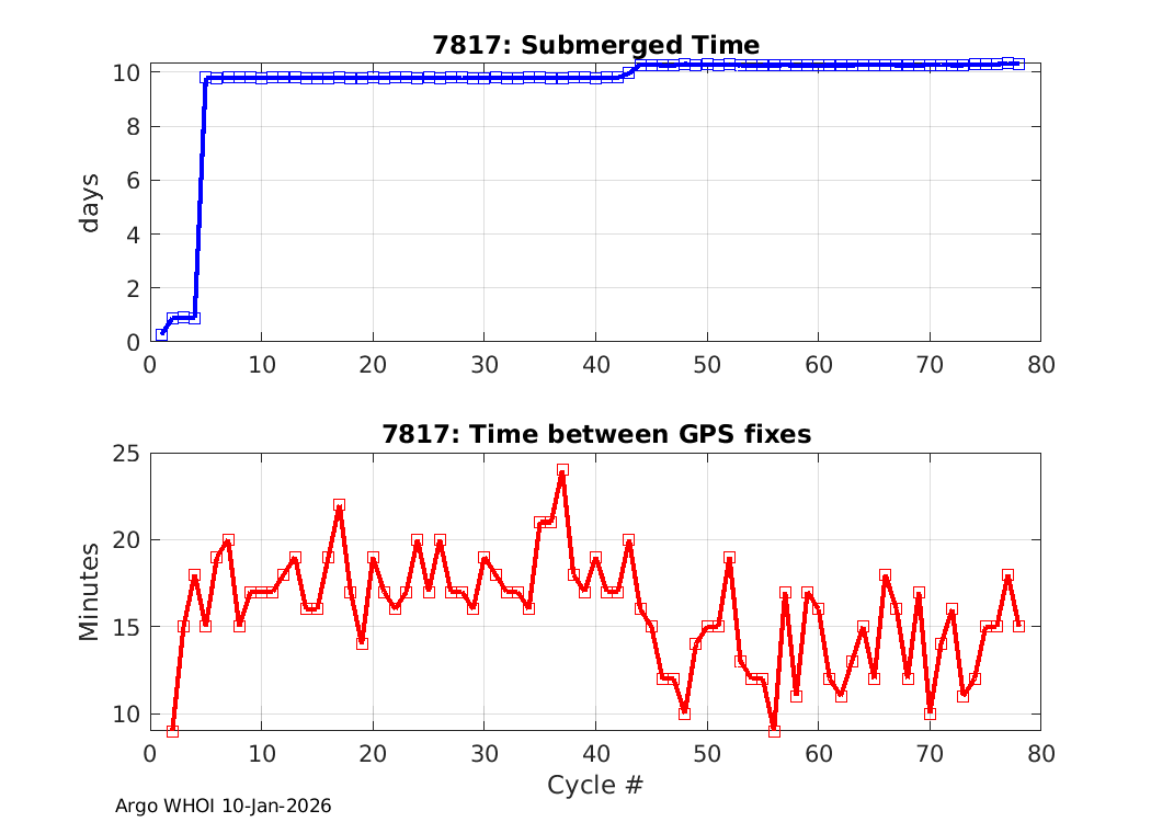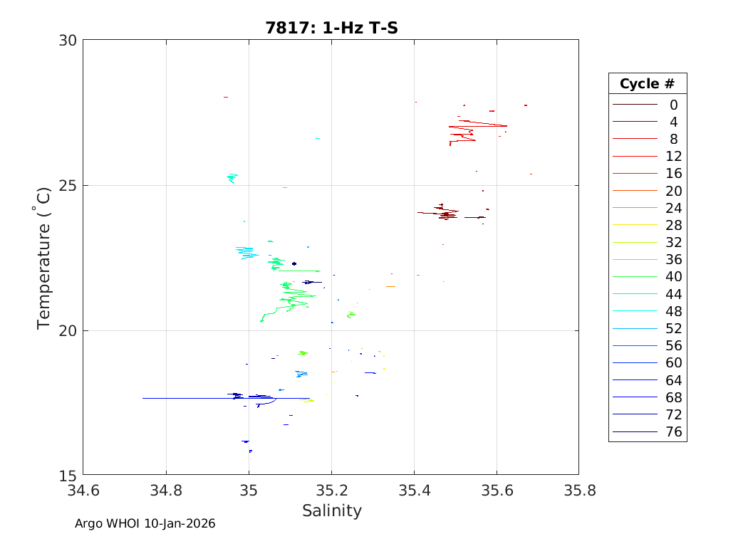 Argo Float: 7817 -- Plots based on telemetry data decoded at WHOI