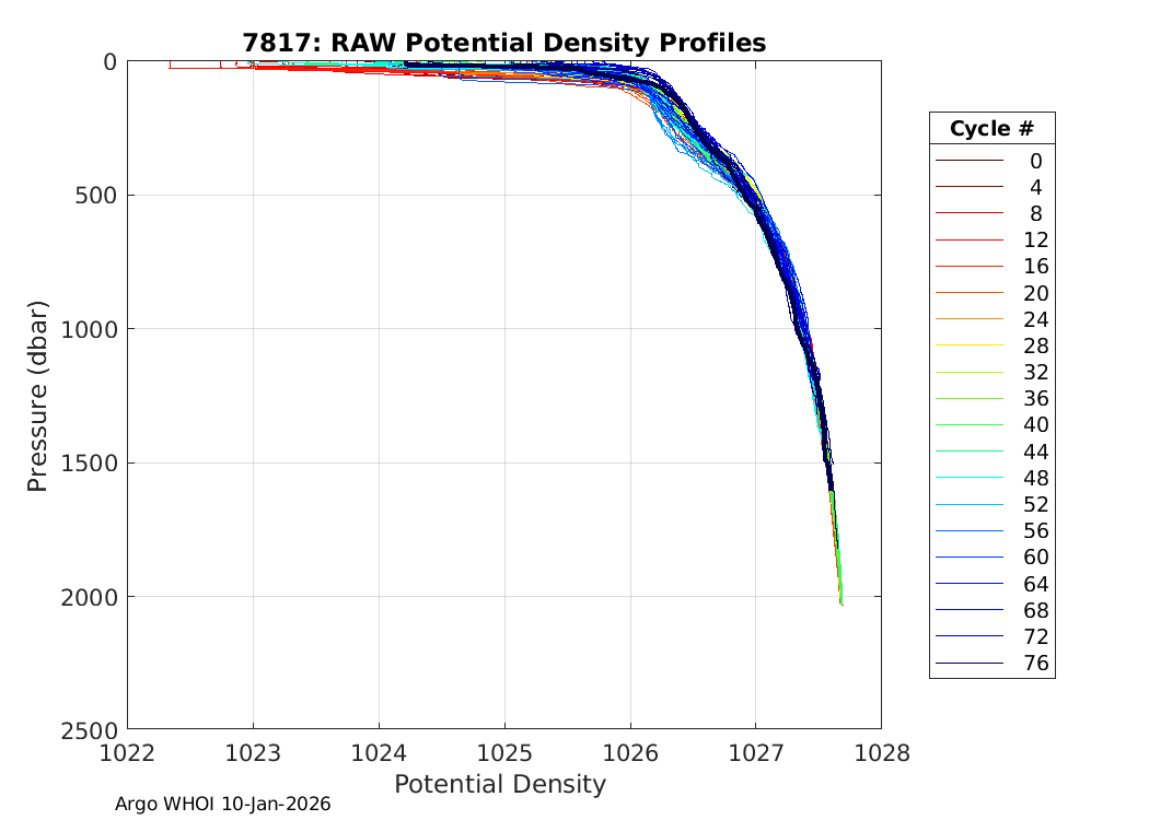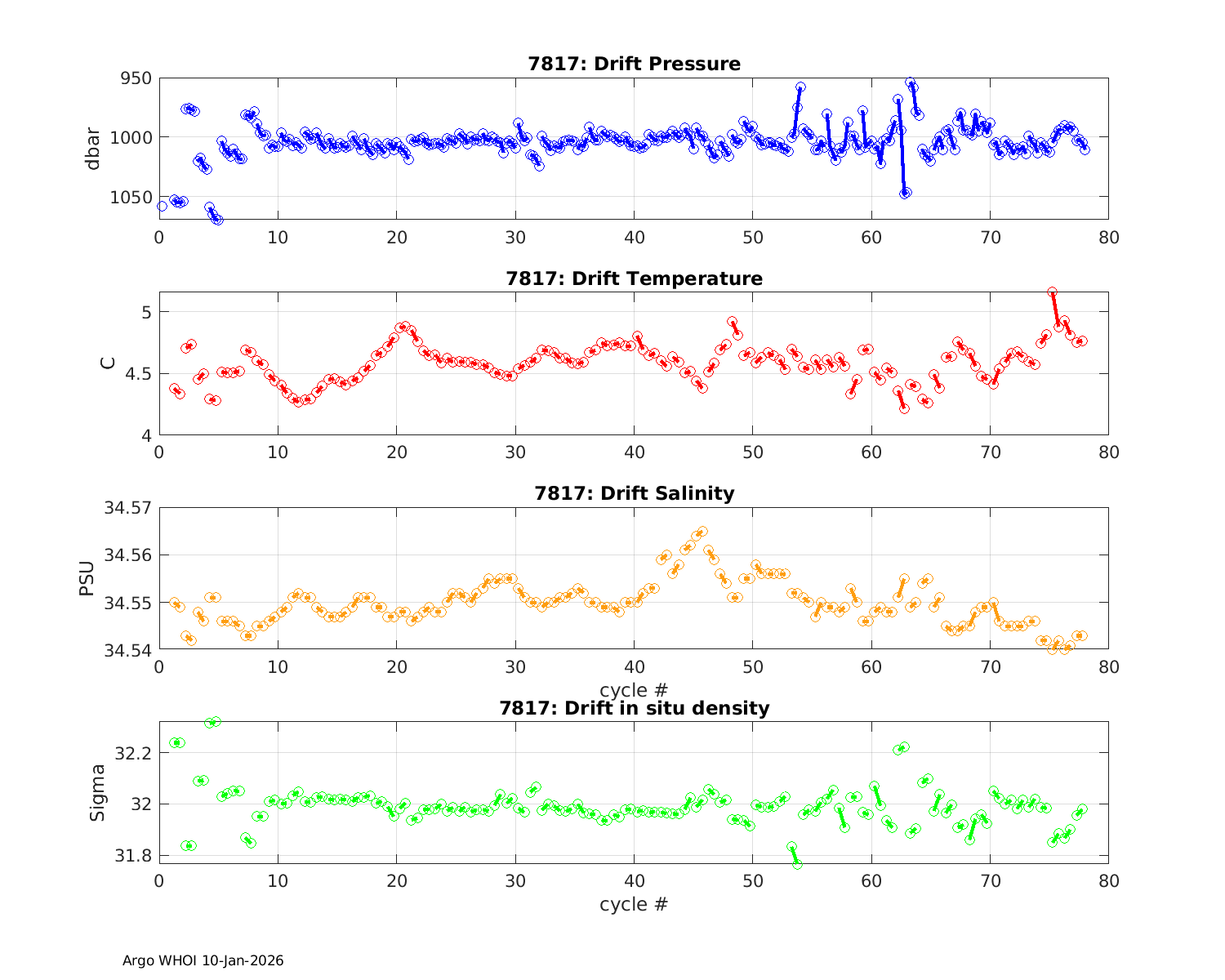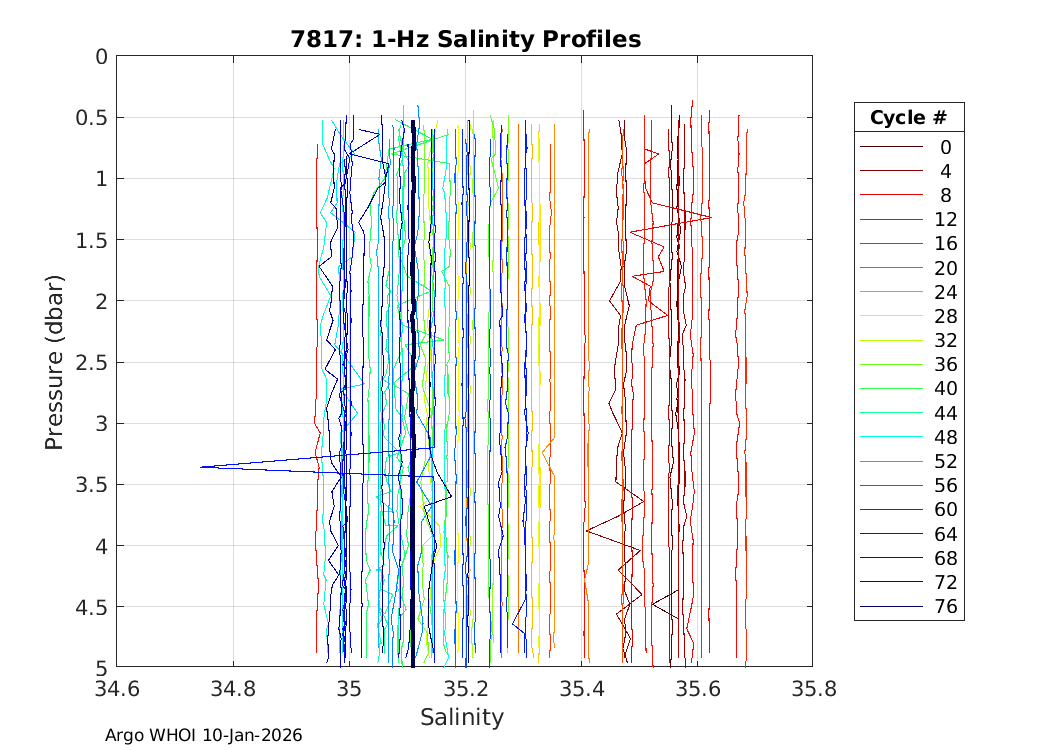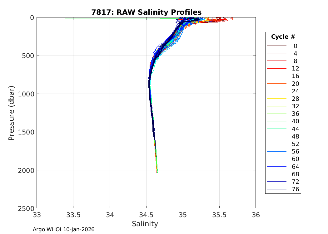 Argo Float: 7817 -- Plots based on telemetry data decoded at WHOI