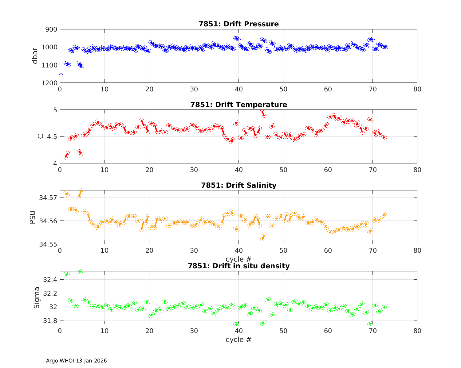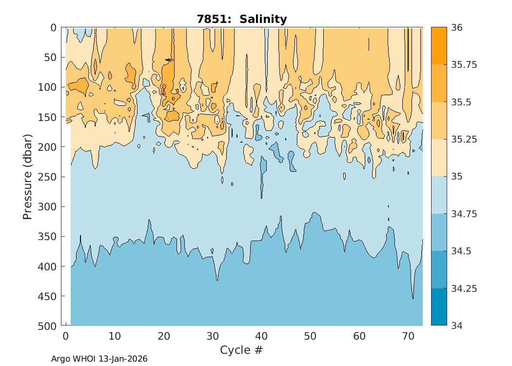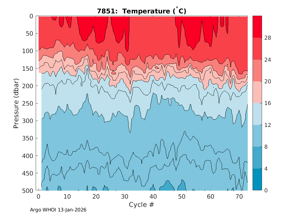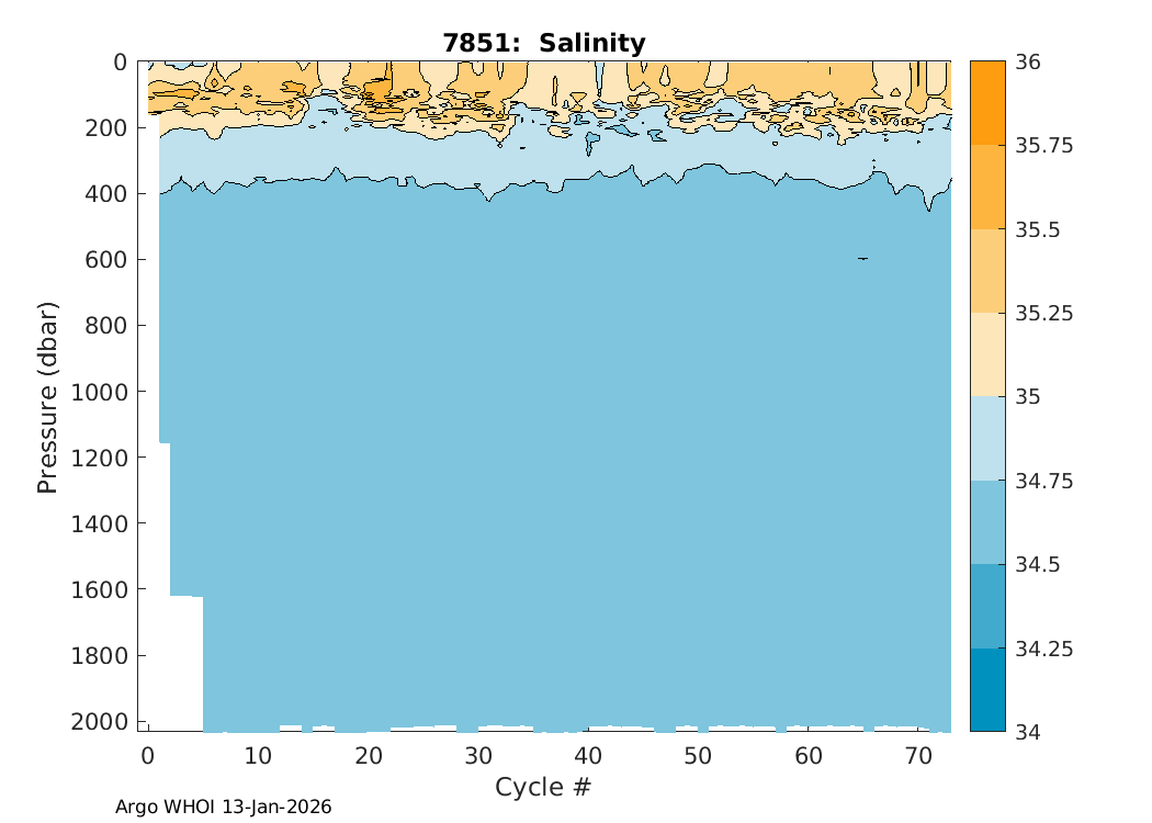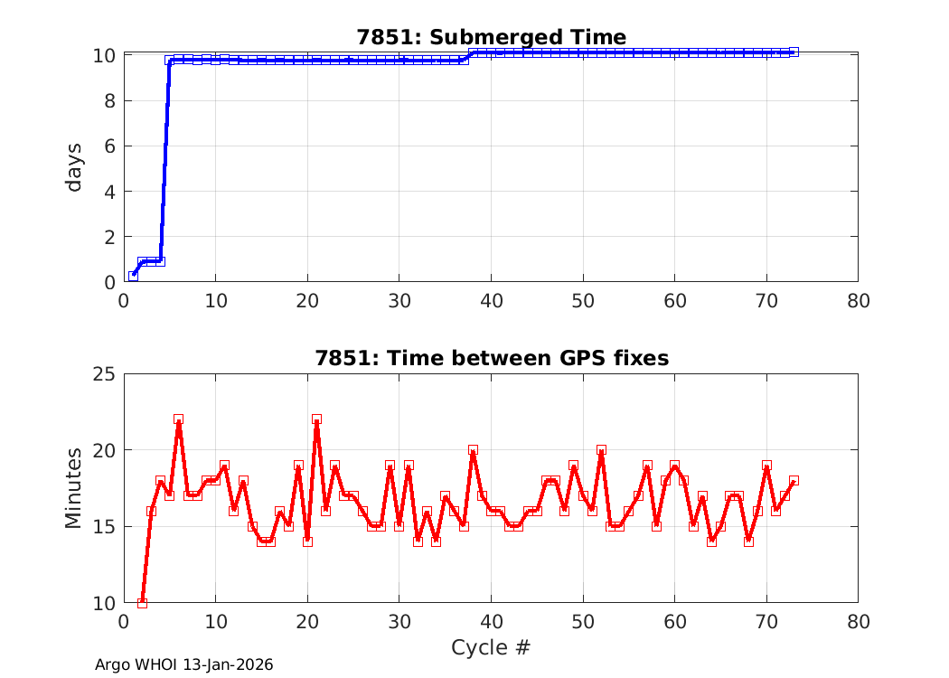 Argo Float: 7851 -- Plots based on telemetry data decoded at WHOI