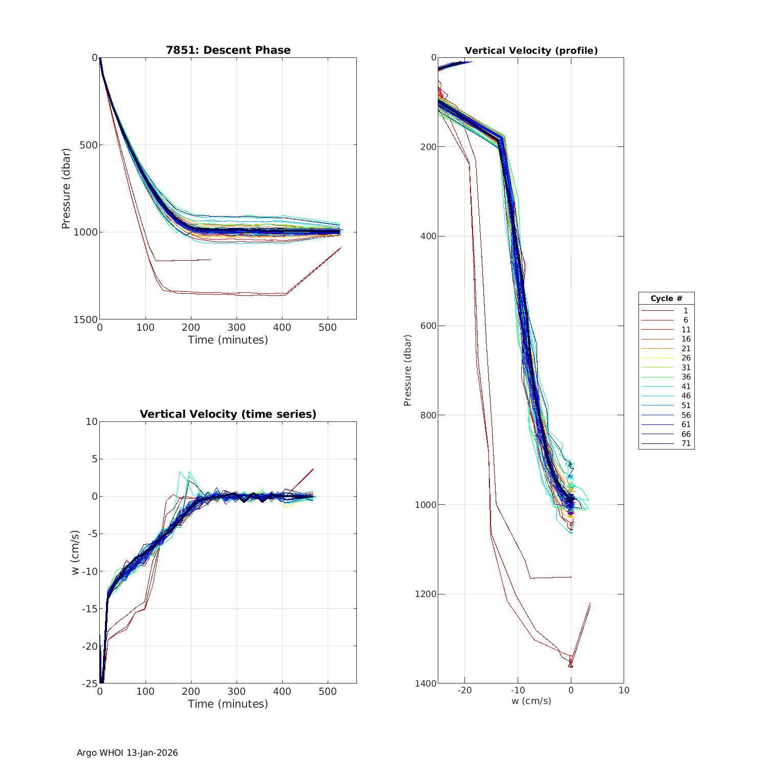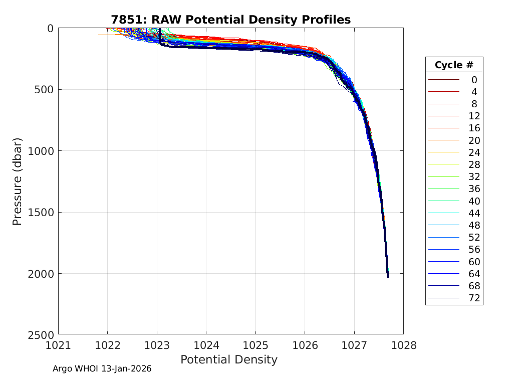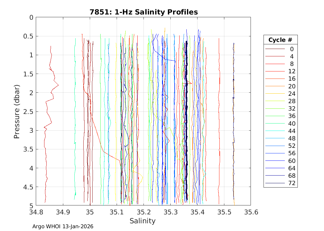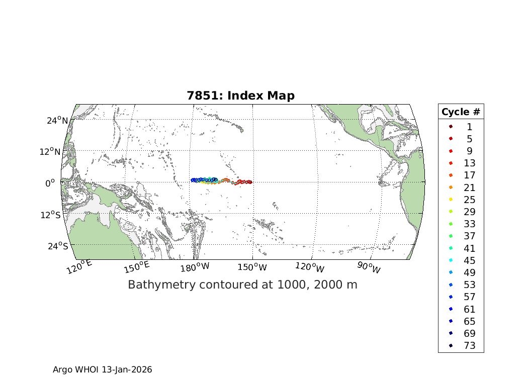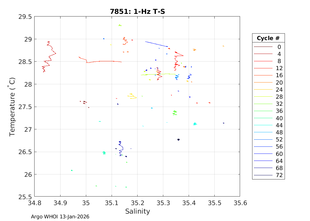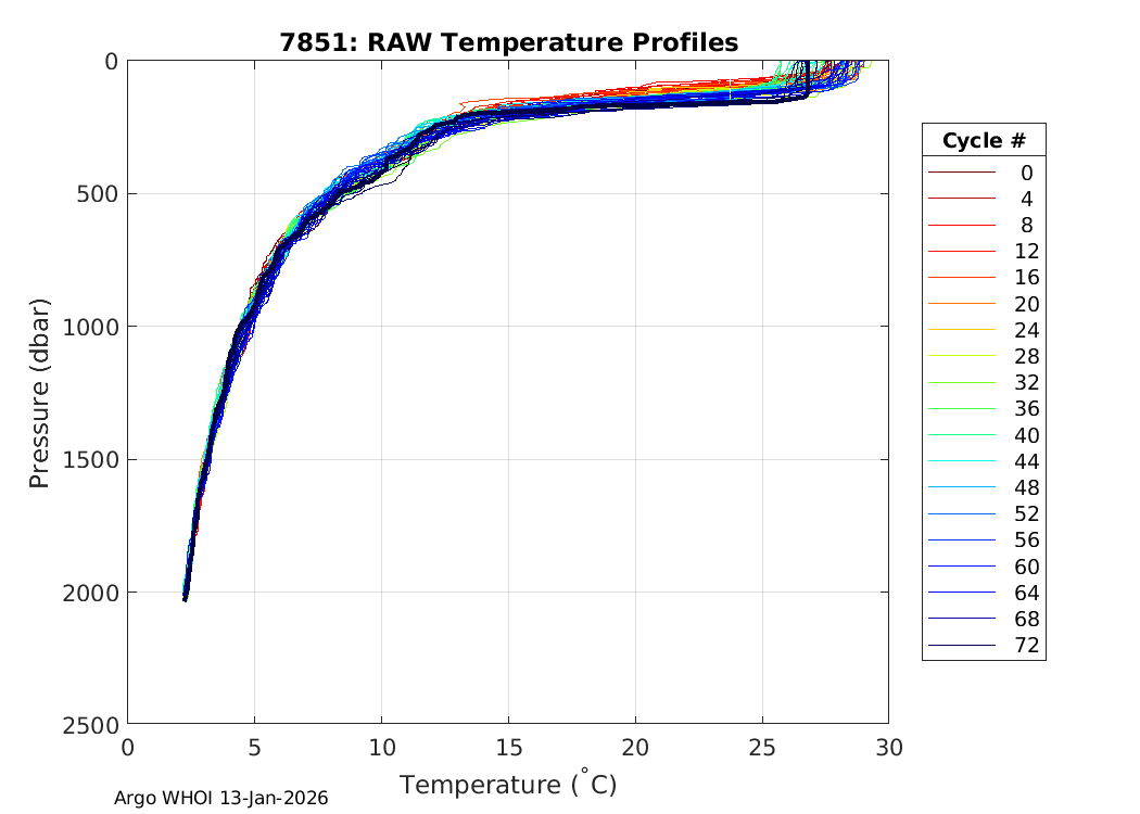 Argo Float: 7851 -- Plots based on telemetry data decoded at WHOI