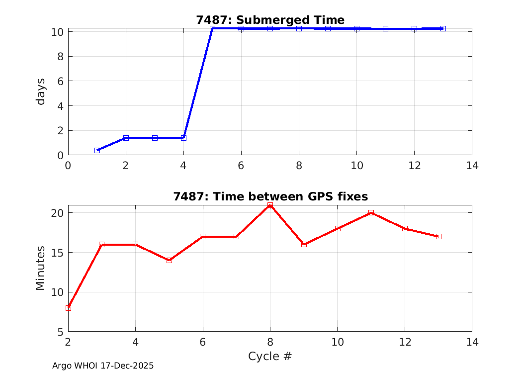 | Etc Telemetry: 7528 GDAC plots: 4903058 SOLO2IR_TS9 TADIRAN SBE41CP: #11021 Druck: #10952689 Deployed: 2019-03-16 Ronald H. Brown, PNE-2019 | ![]() |